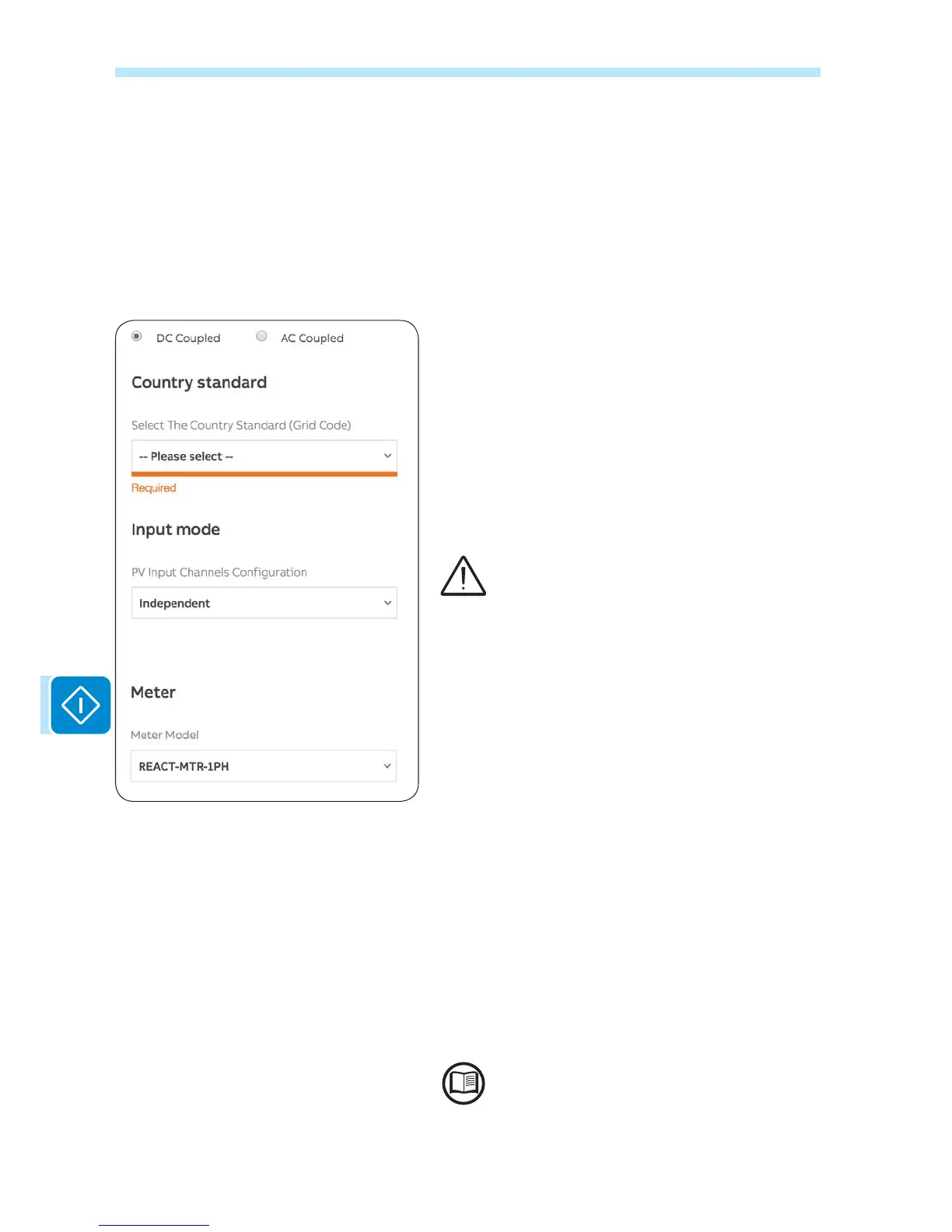 STEP 4 - Type of coupling, Inverter country standard, Input mode,