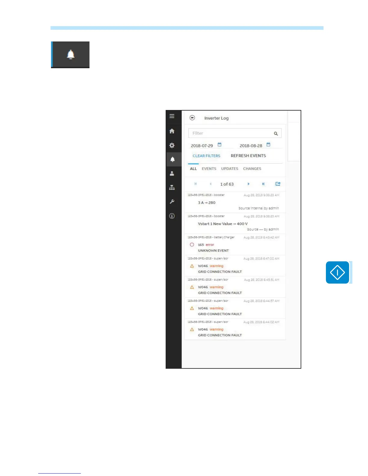 In the Inverter Log Section it’s possible to view the Alarm and Warning