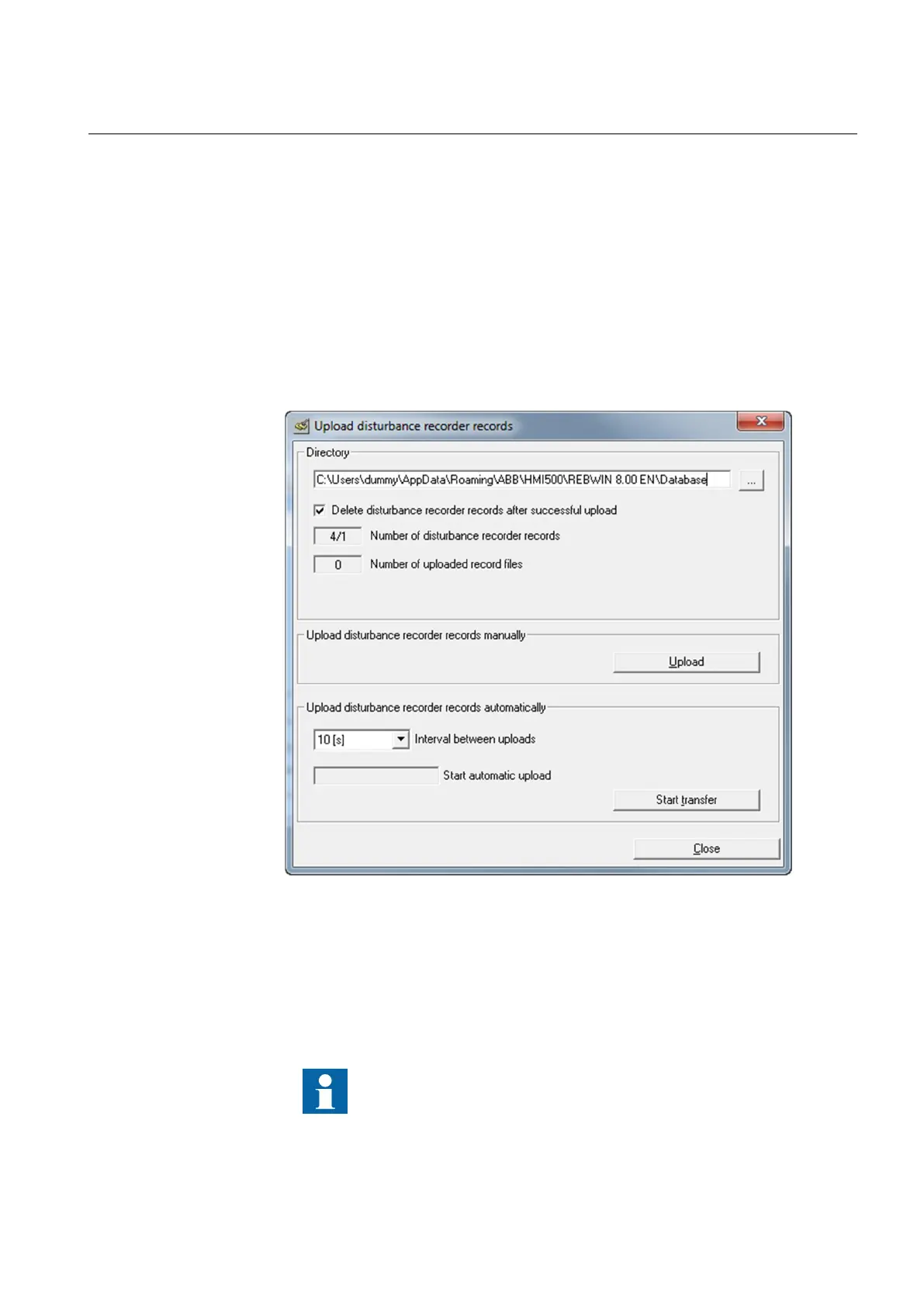 3. Upload records from selected disturbance recorders (Transfer disturbance