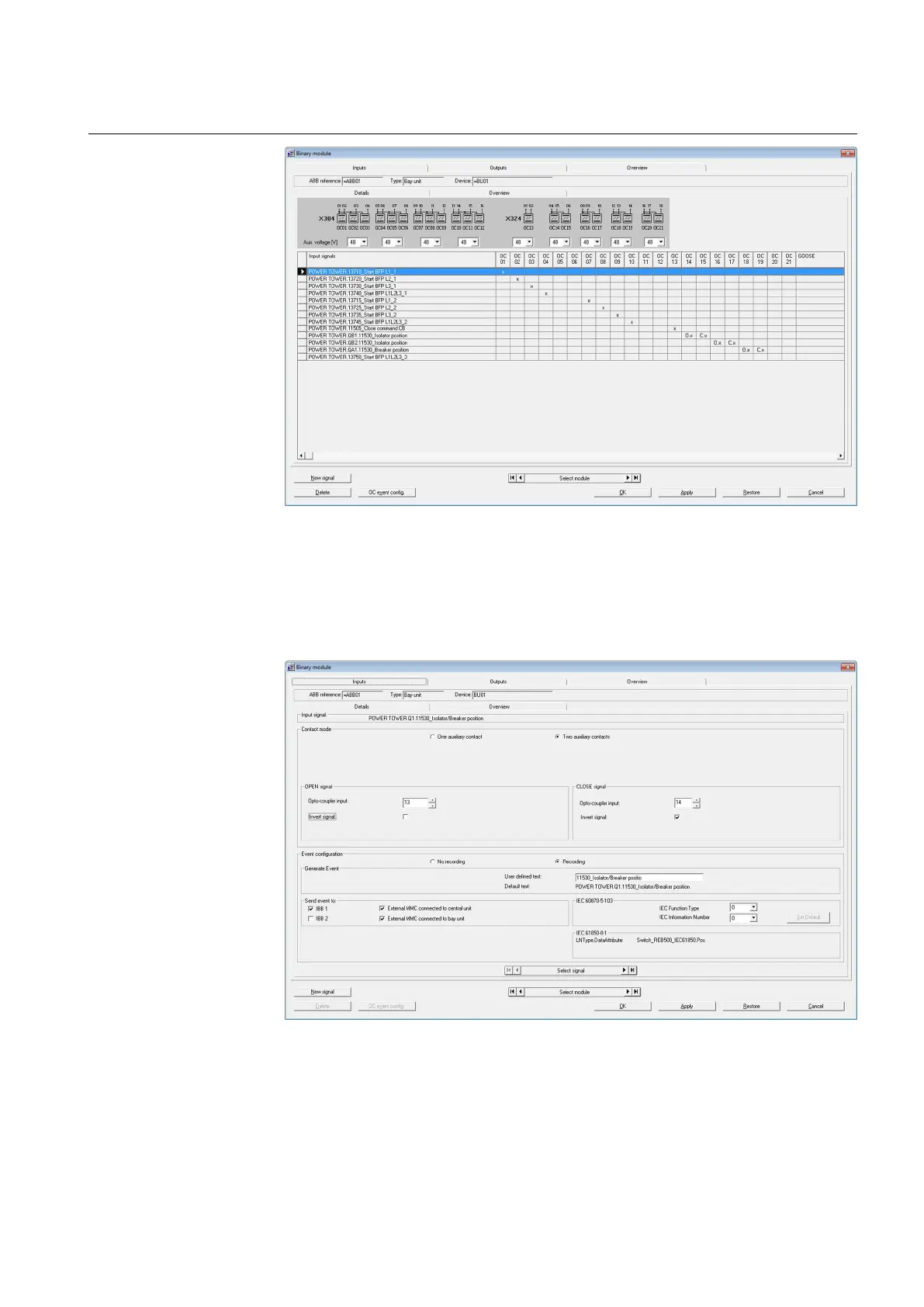 Figure 27 Configuration / Binary module - Bay unit inputs