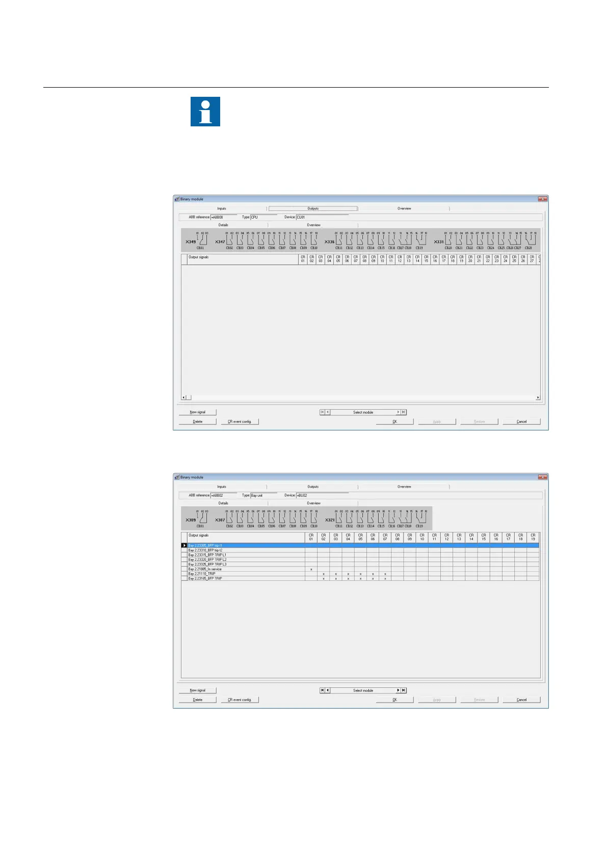 Figure 29 Configuration / Binary module - Outputs - Overview – CU