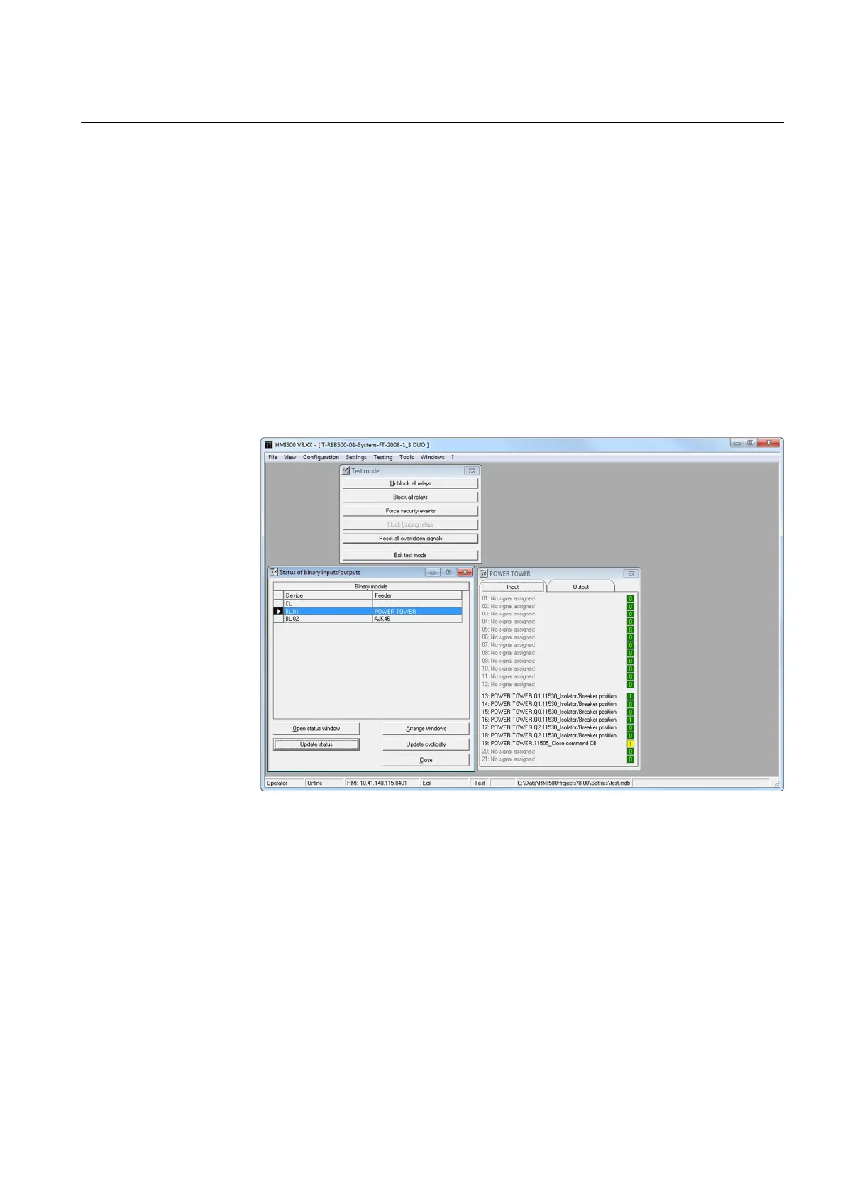 necessary to open the “Status of binary inputs/outputs” dialog. Providing the test