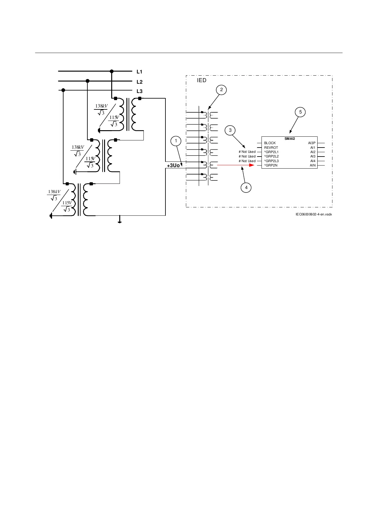 Figure 21: Open delta connected VT in low impedance or solidly earthed power system