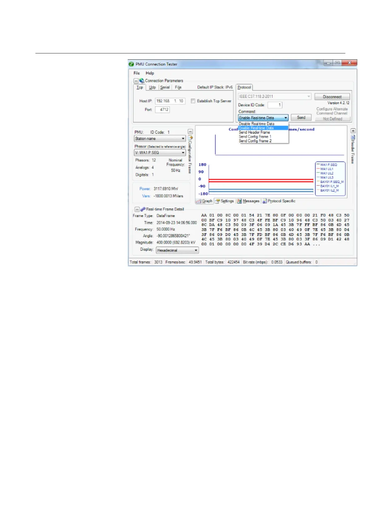 Establishing connection and verifying the IEEE C37.118/1344 communication