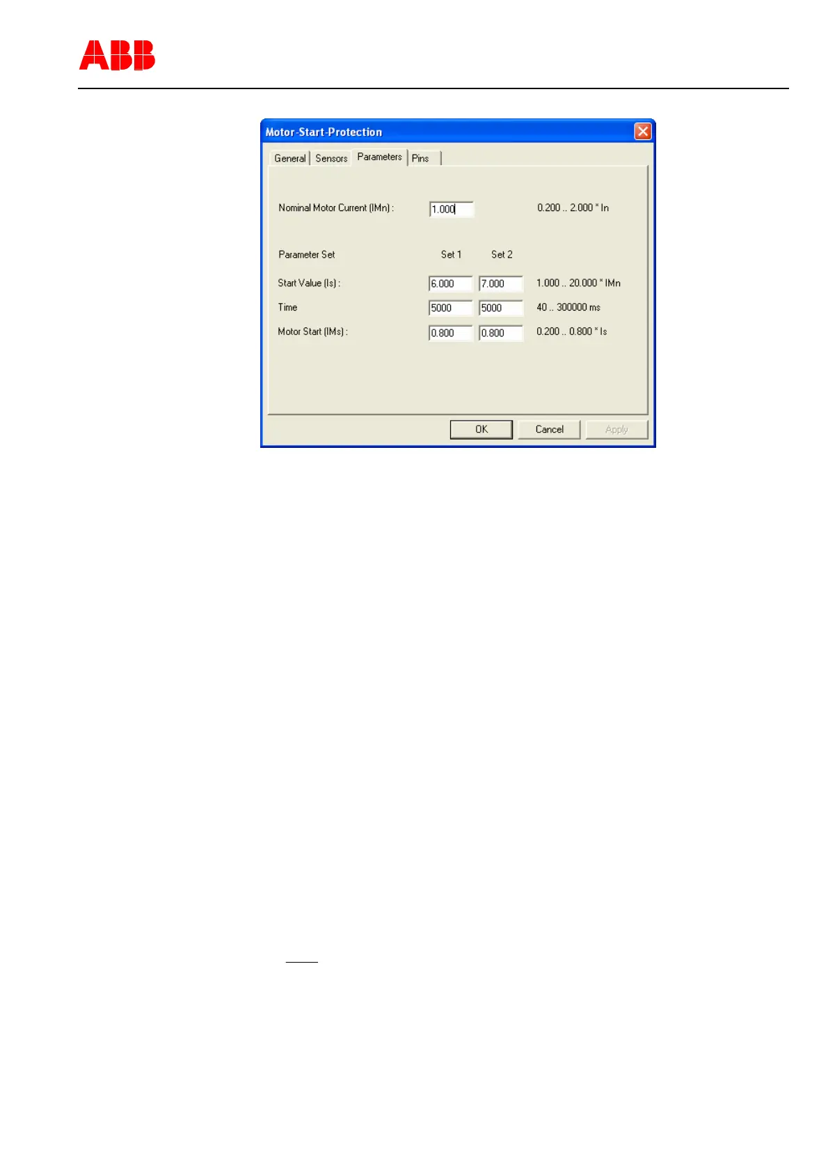 Motor start (IMs) the setting for detecting a starting process, related to the