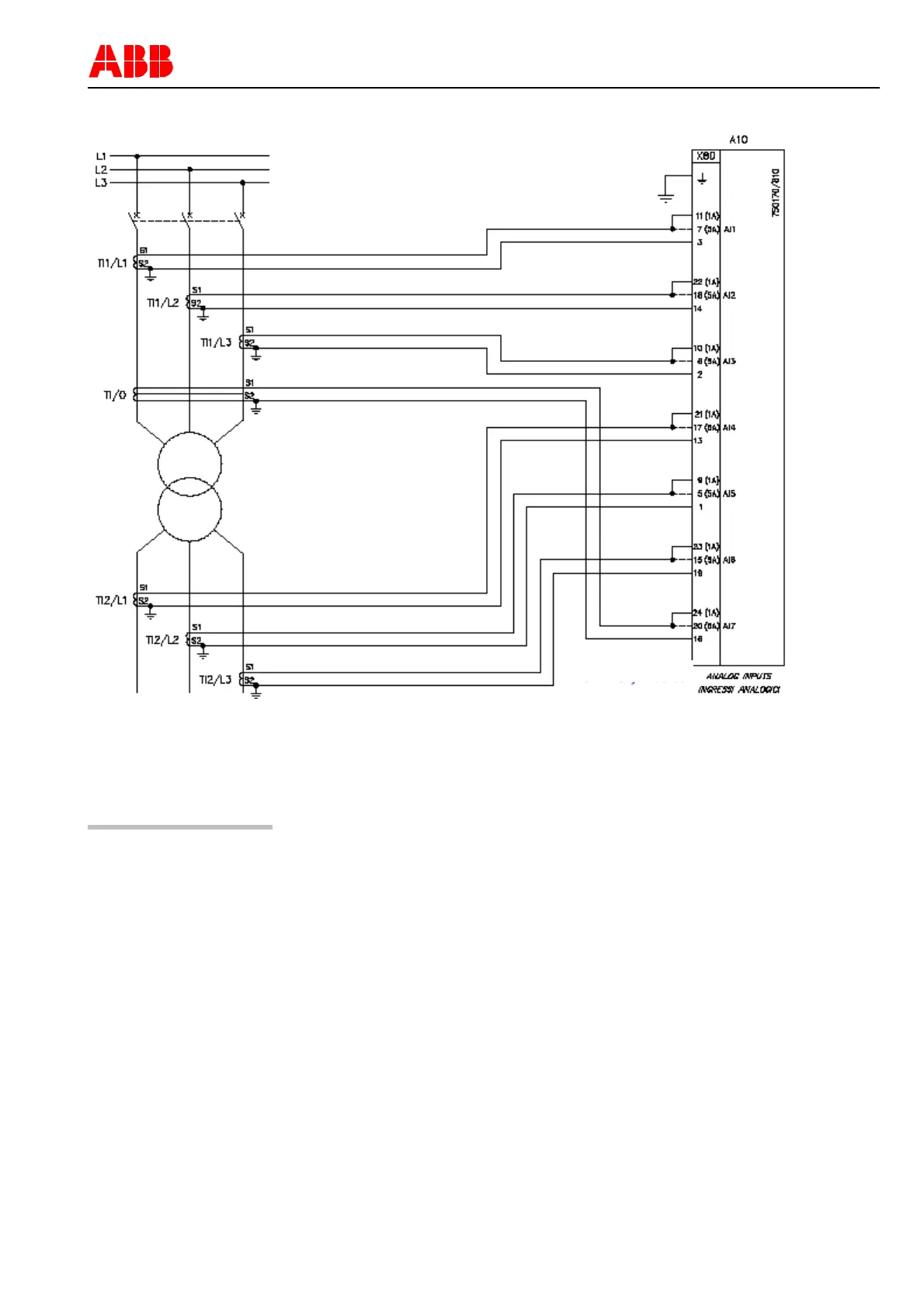 Figure 10: Example of connection diagram for the transformer differential protection with transformers