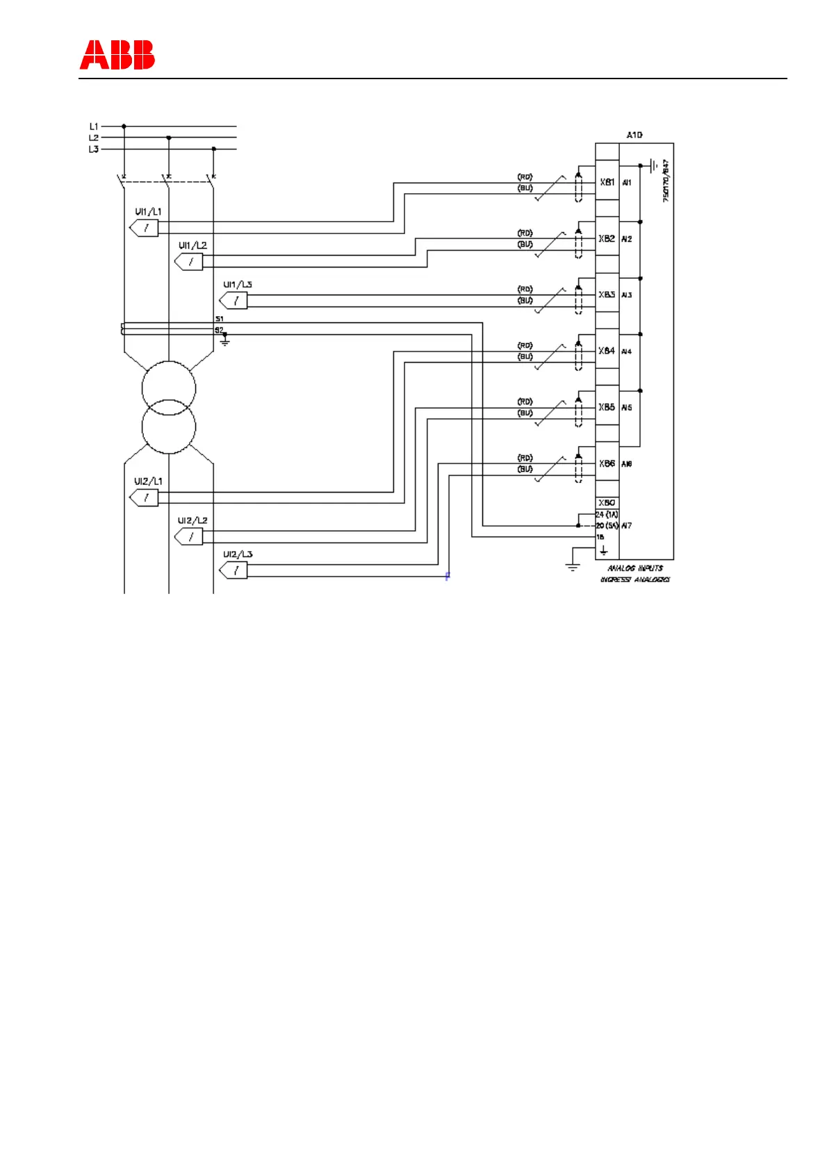 Figure 11: Example of connection diagram for the transformer differential protection with sensors