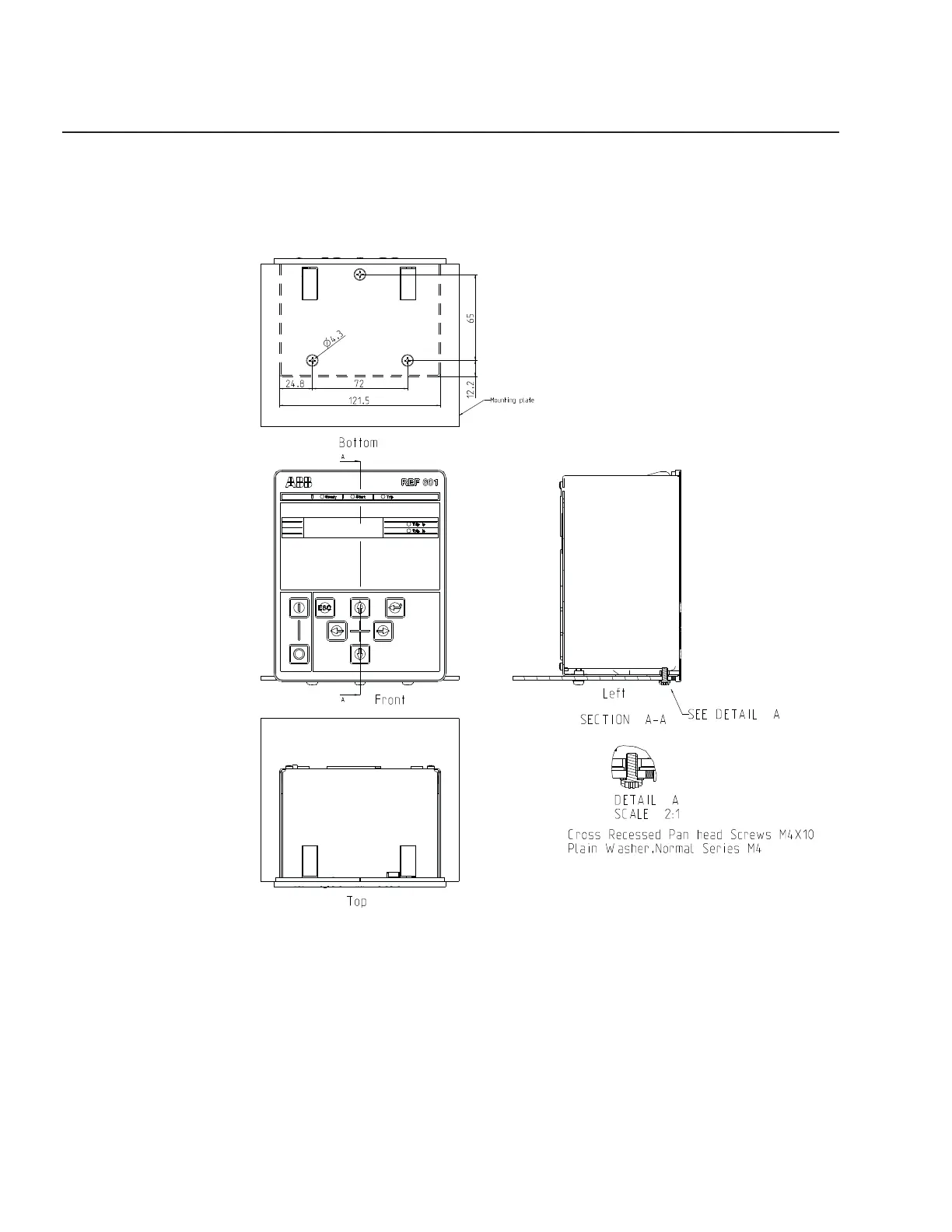 Fig. 40 – Relay mounting dimensions with Breaker mounting