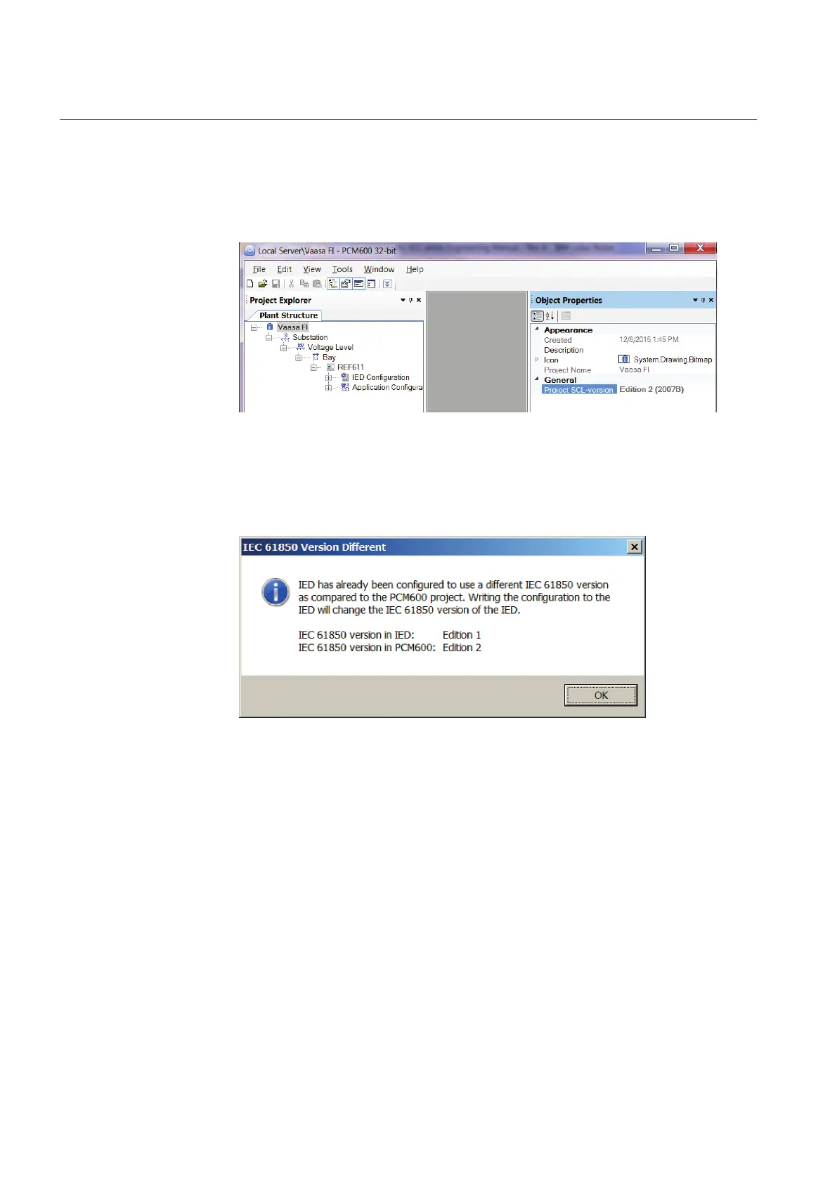 4.8 PCM600 project's IEC 61850 version identification