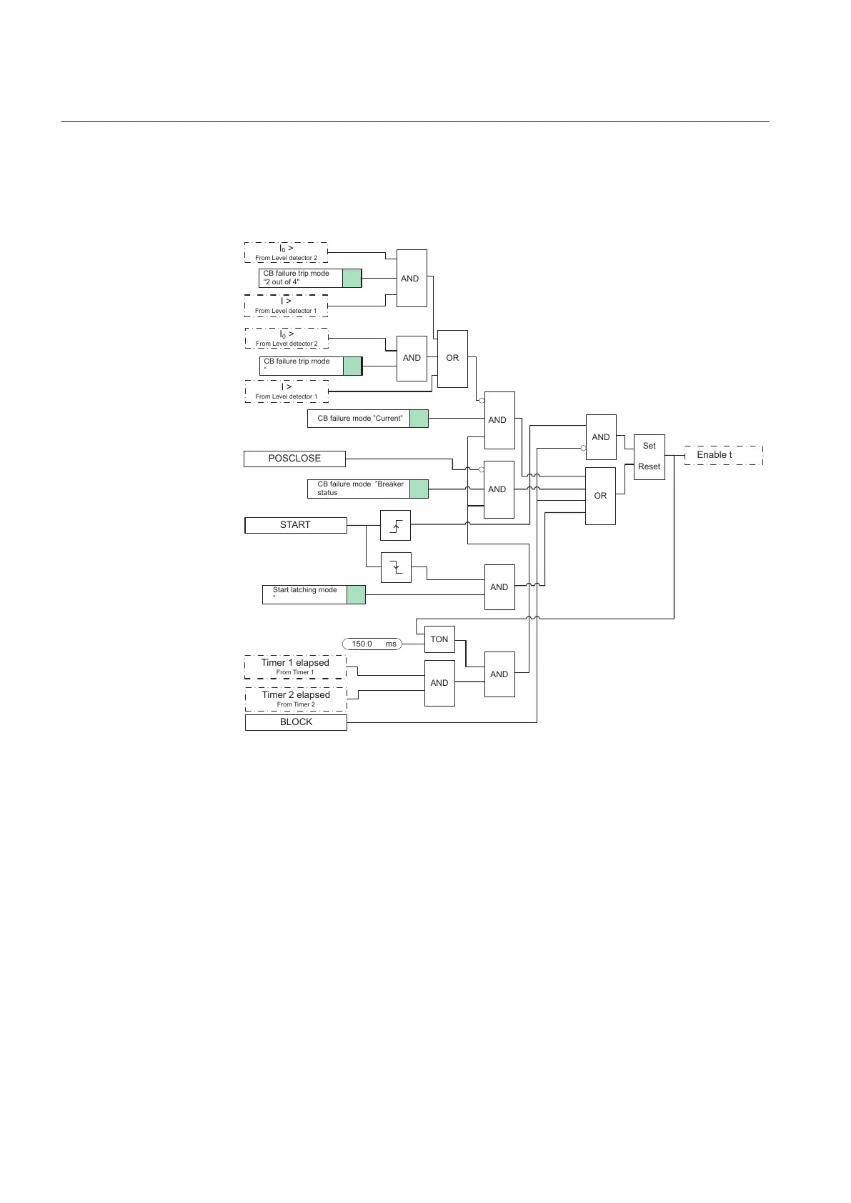 If CB failure mode is set to the "Breaker status" mode, the resetting logic requires
