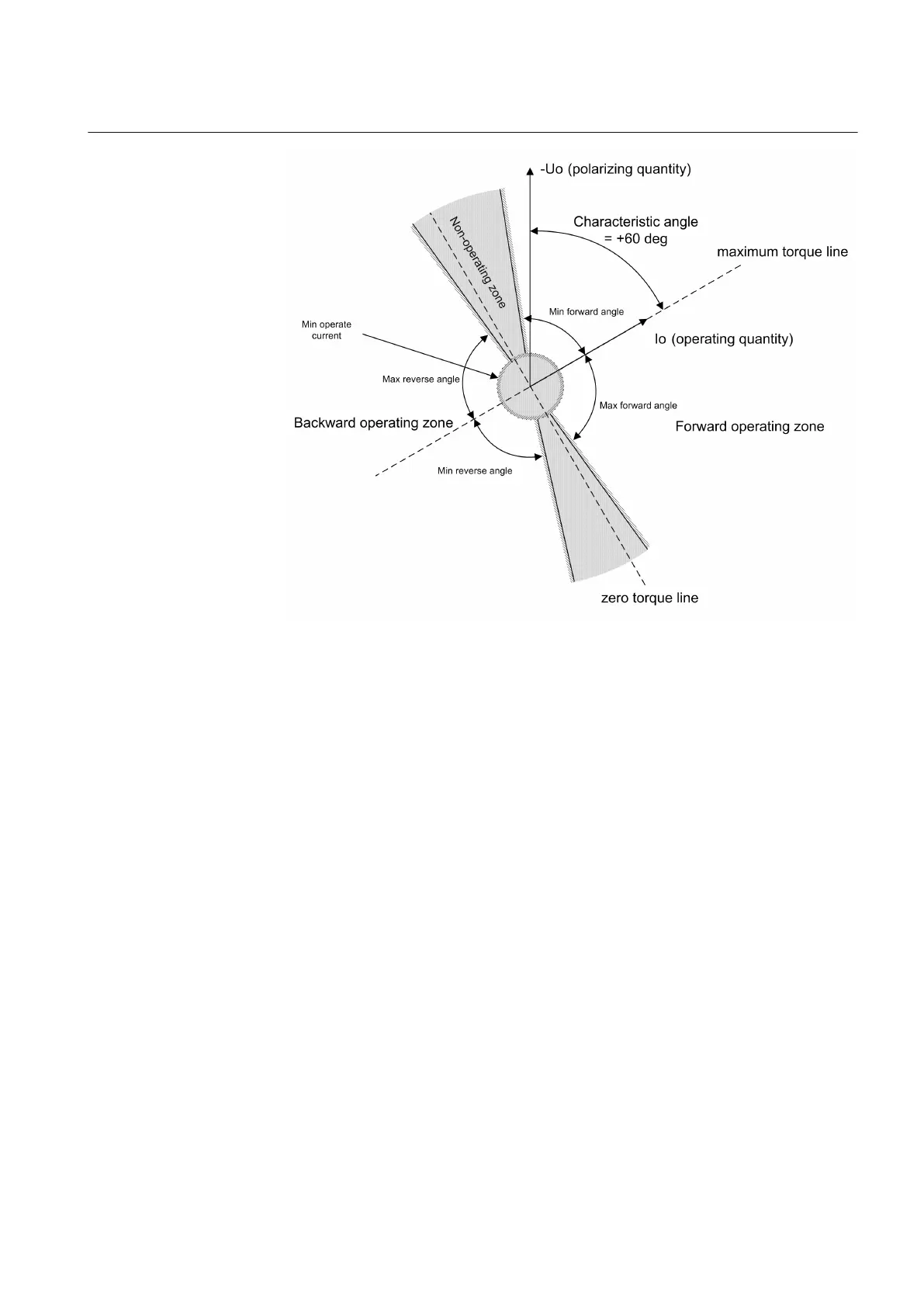 Figure 136: Definition of the relay characteristic angle, RCA=+60 degrees in a