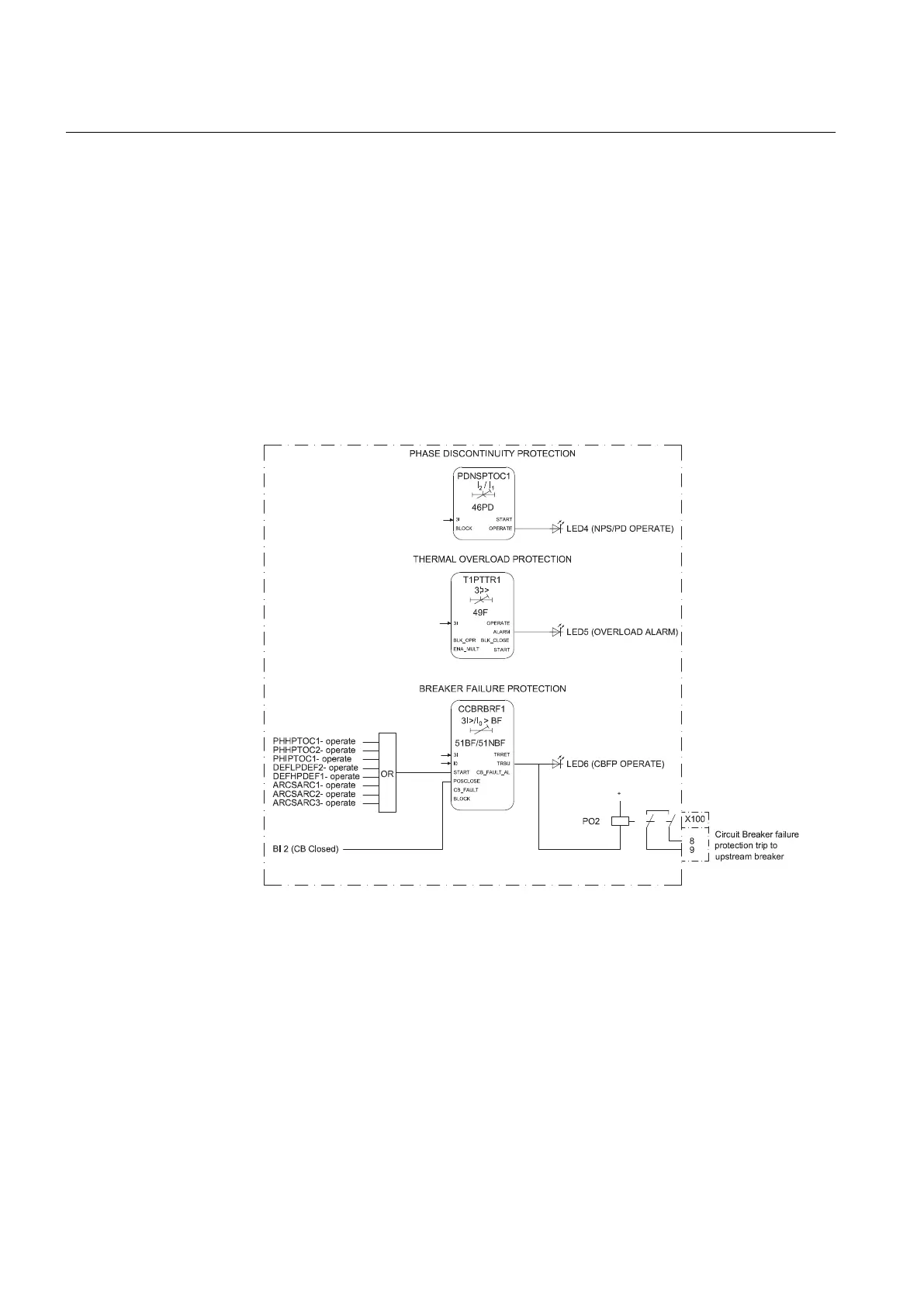 protection is connected to the Master Trip and also to an alarm LED. LED 4 is used