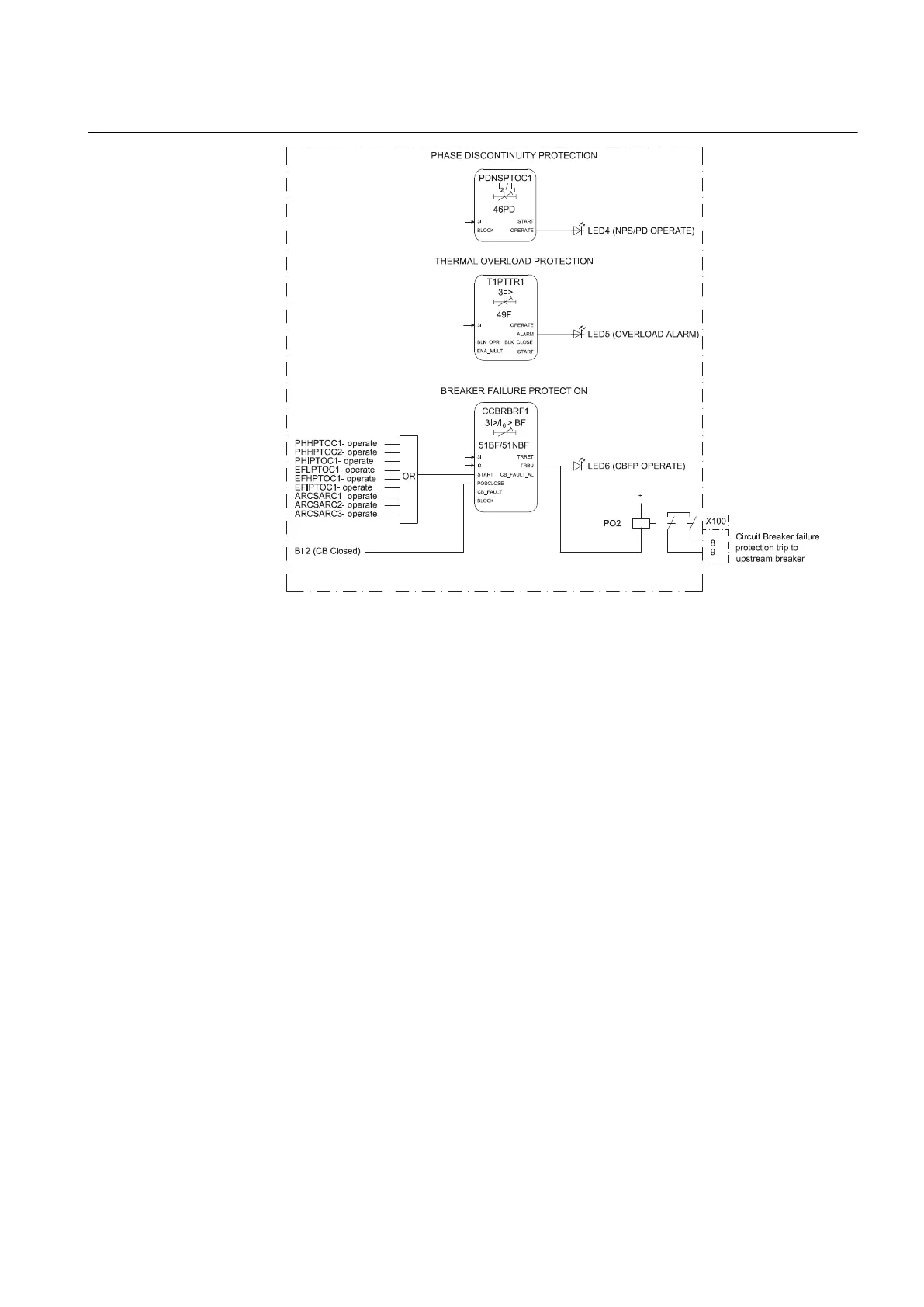 protection is connected to the Master Trip and also to an alarm LED. LED 4 is used