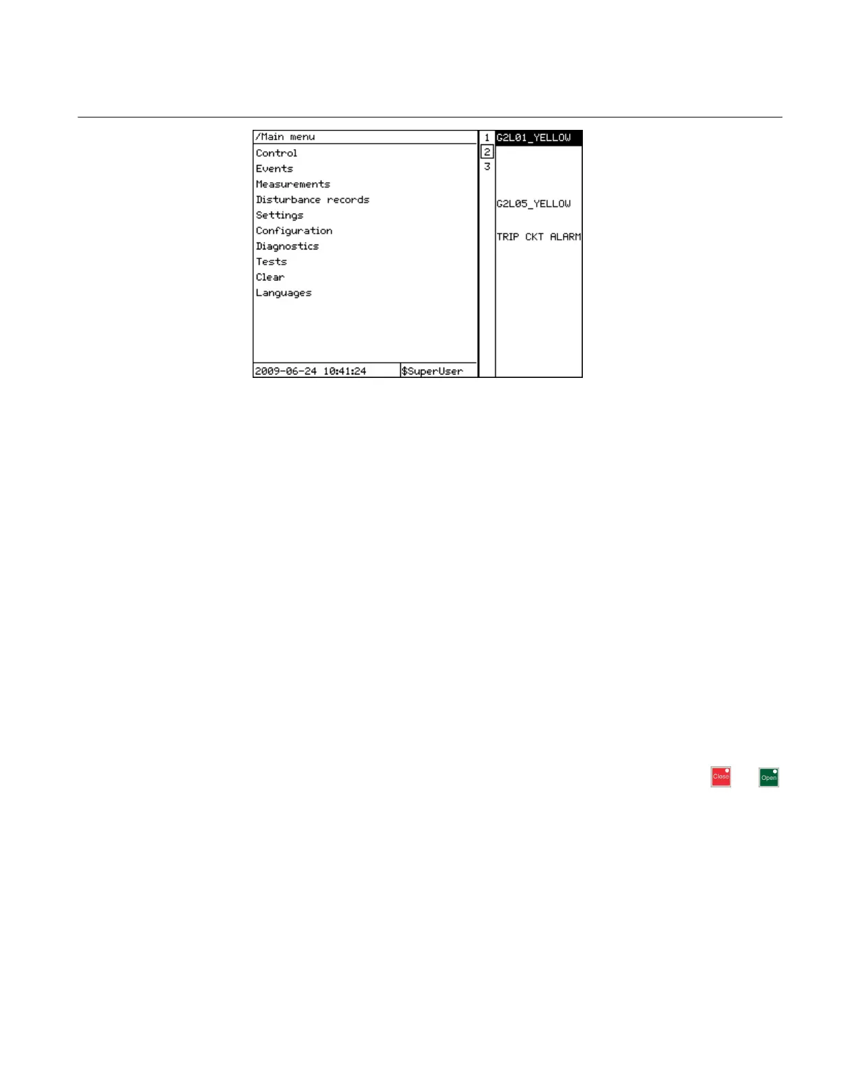 The LHMI includes three protection status LEDs above the display: Normal, Pickup and