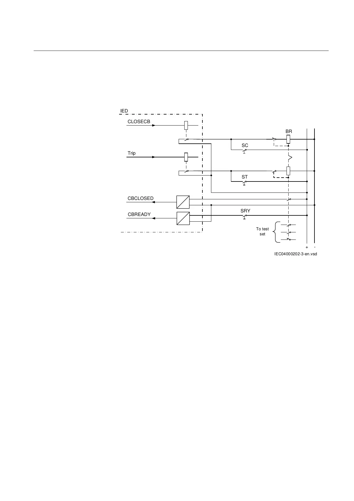 • A bi-stable relay (BR) or two auxiliary relays to simulate a CB