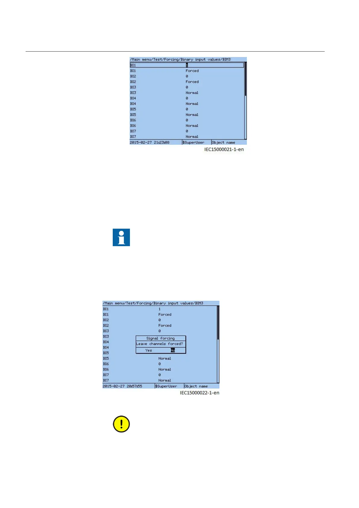 When navigating away from a LHMI forcing menu for an I/O board, the user is