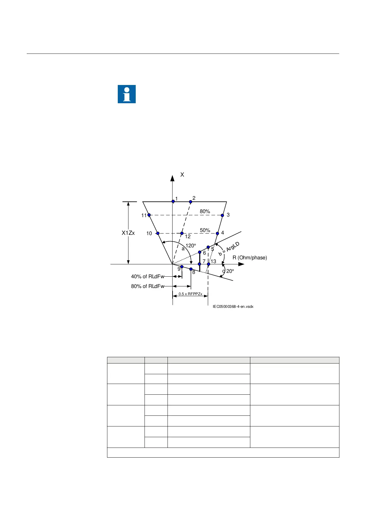 Figure 12: Distance protection characteristic with test points for phase-to-