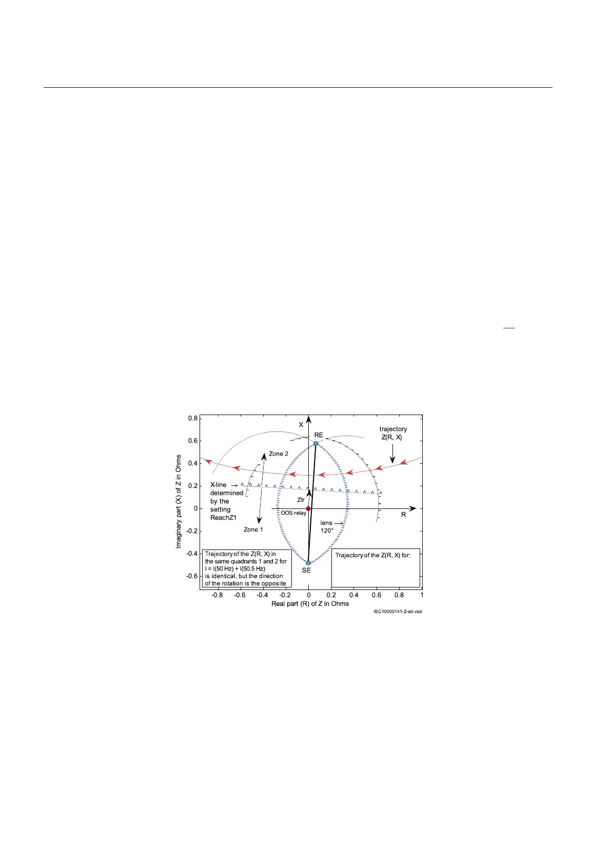Figure 15: Trajectory of the impedance Z(R, X) for the injected current with