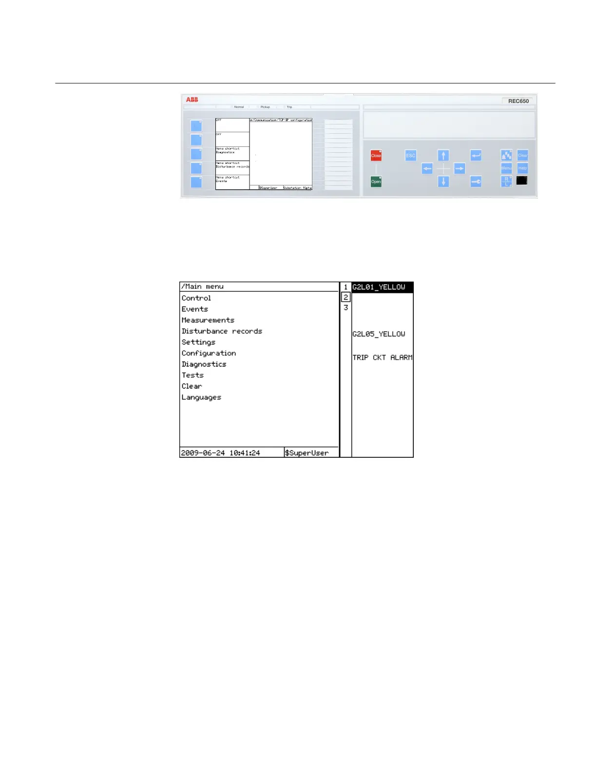 The LHMI includes three protection status LEDs above the display: Normal, Pickup and