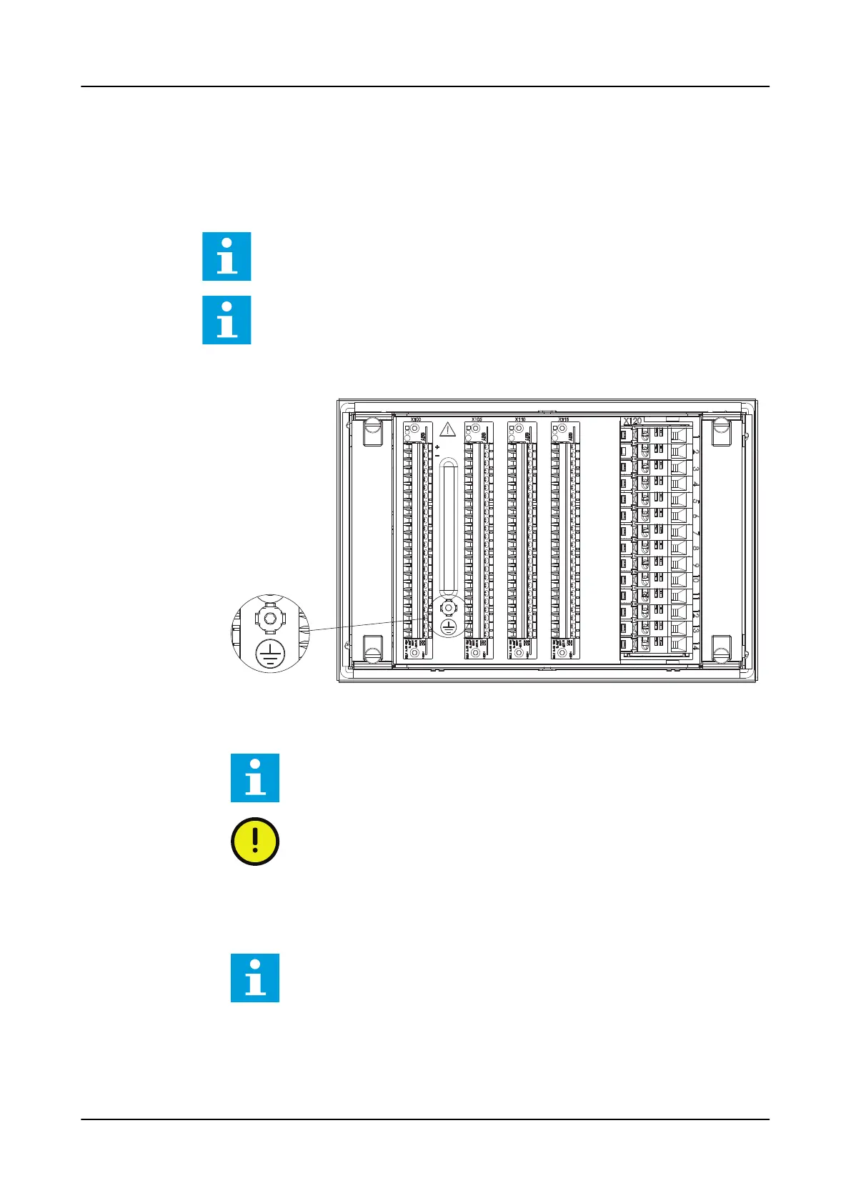 Figure 30: The protective earth screw is located between connectors X100 and