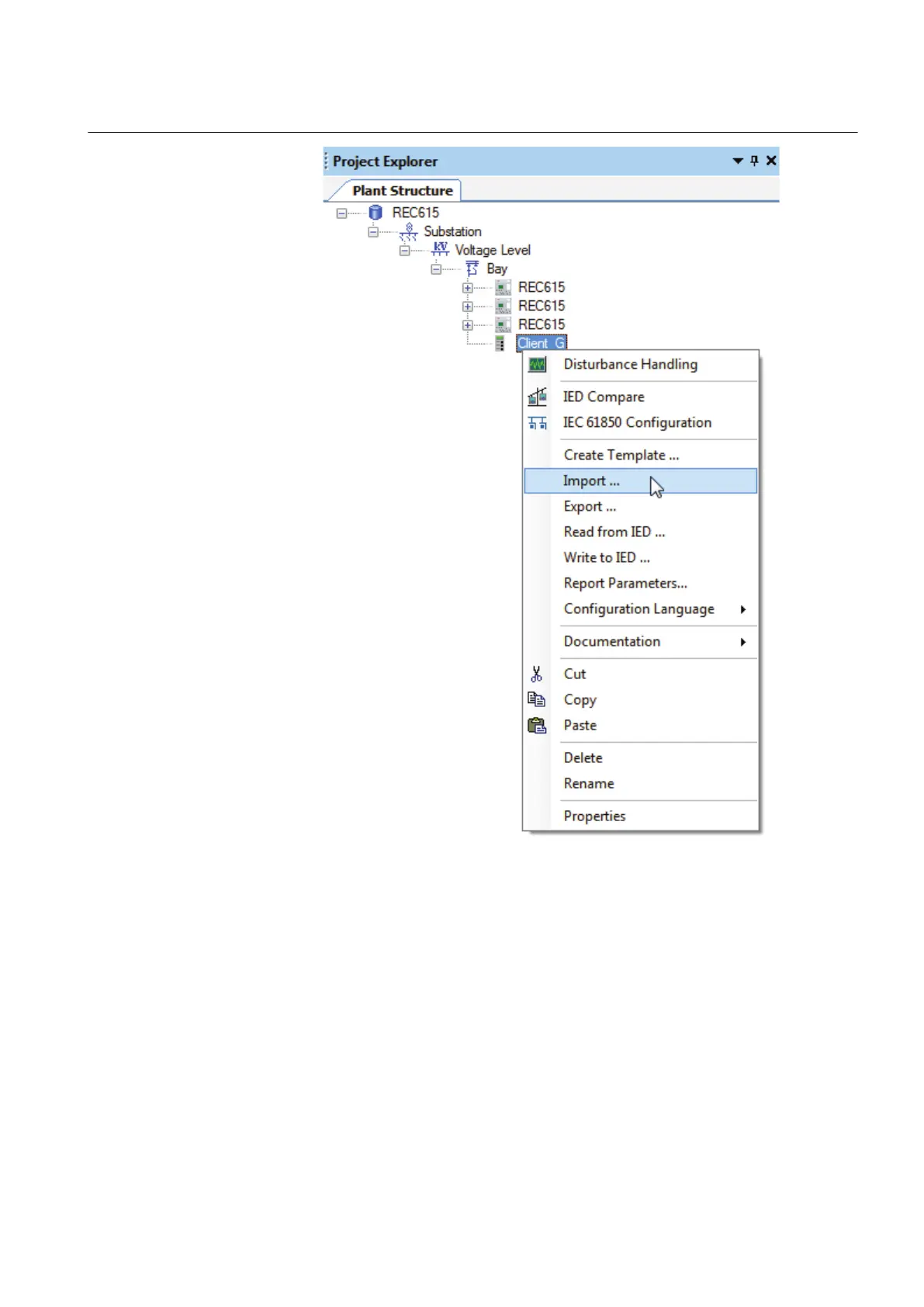 Figure 50: Selecting Import on the shortcut menu