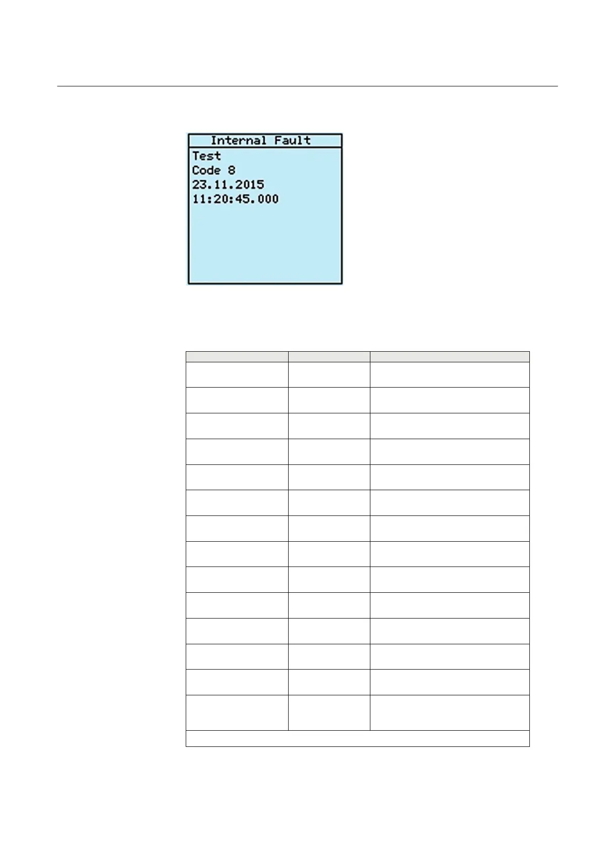 Table 21: Internal fault indications and codes