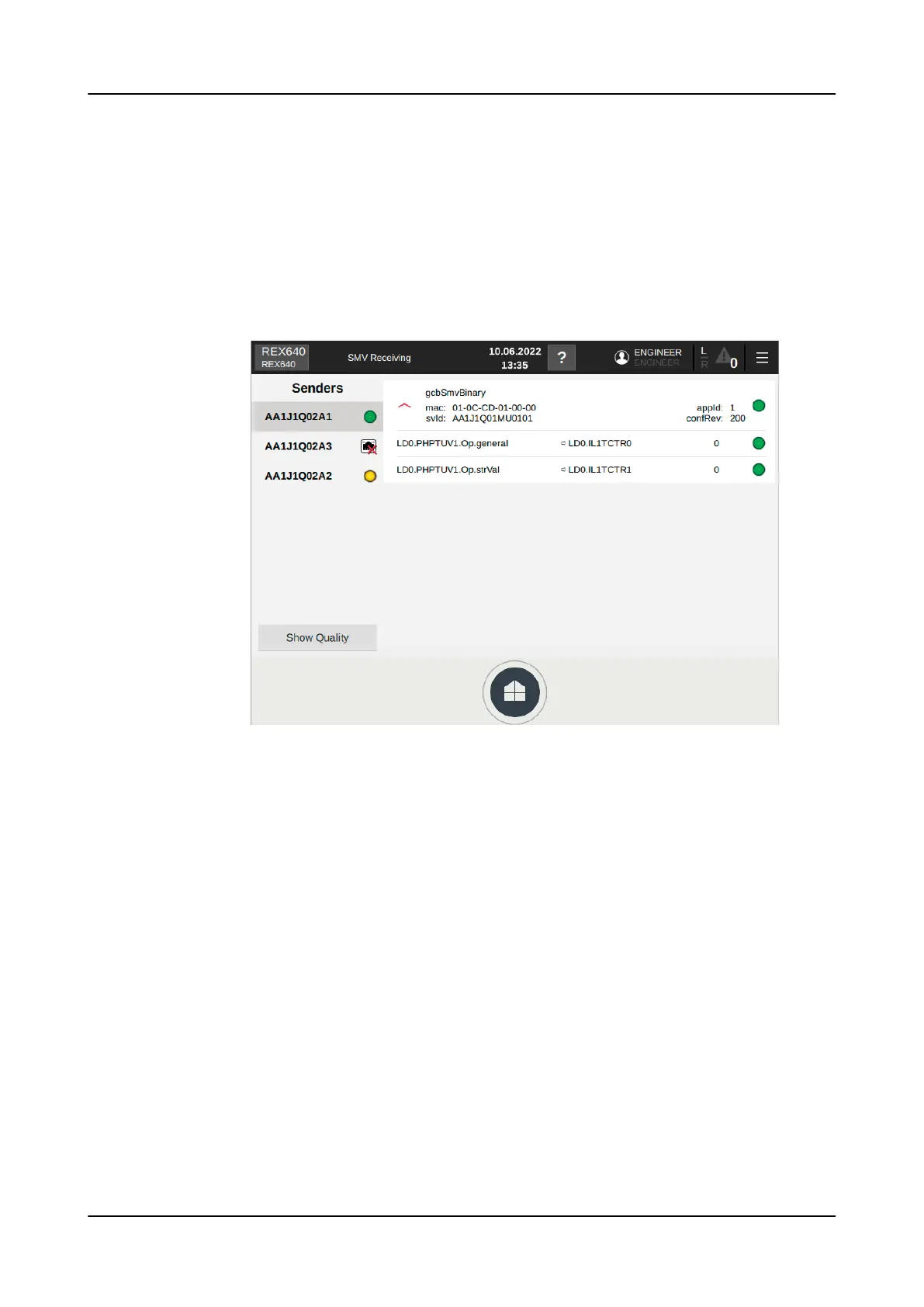1. On the SMV Receiving page, check the sampled values data that the relay