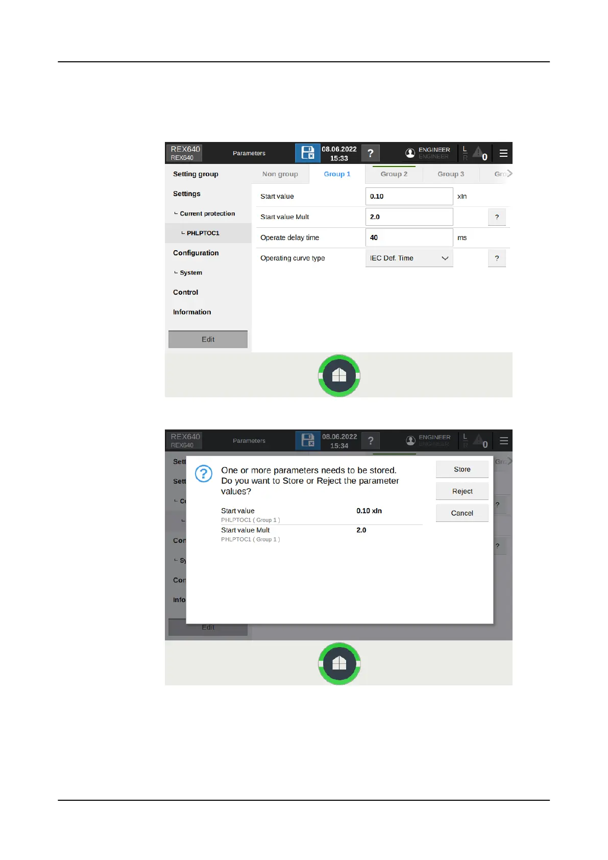 Figure 29: Storing or rejecting parameter changes