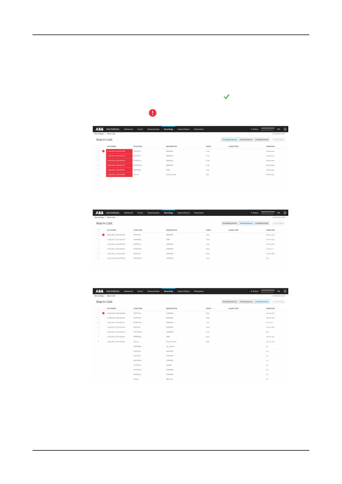 Figure 48: Viewing persisting alarms