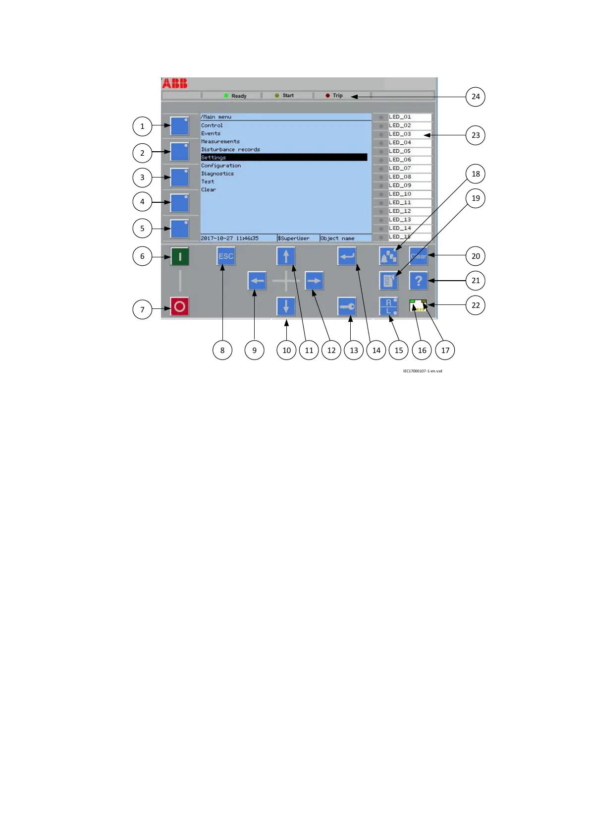 Figure 5: LHMI keypad with object control, navigation and command push-buttons and