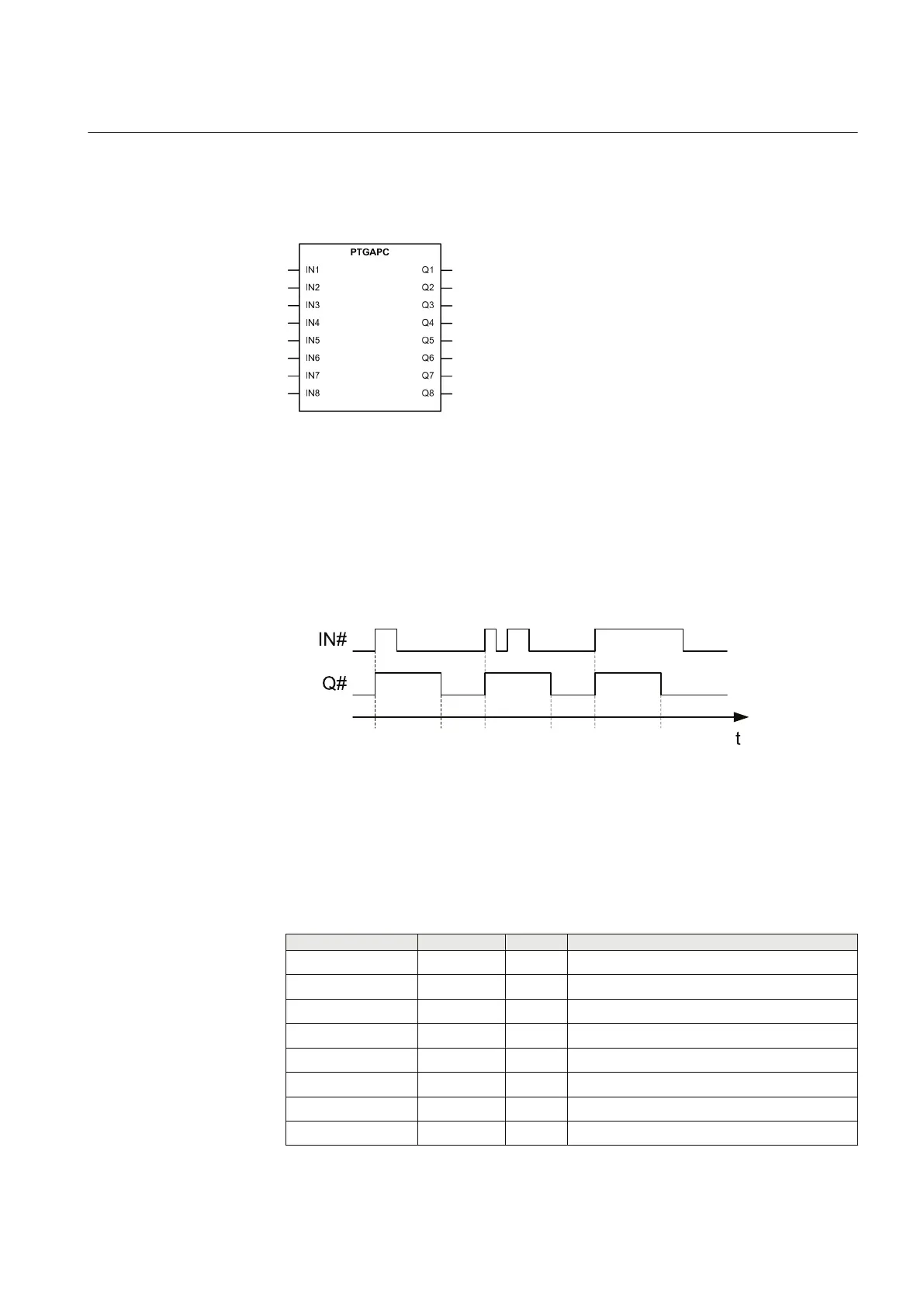 The pulse timer function block PTGAPC contains eight independent timers. The