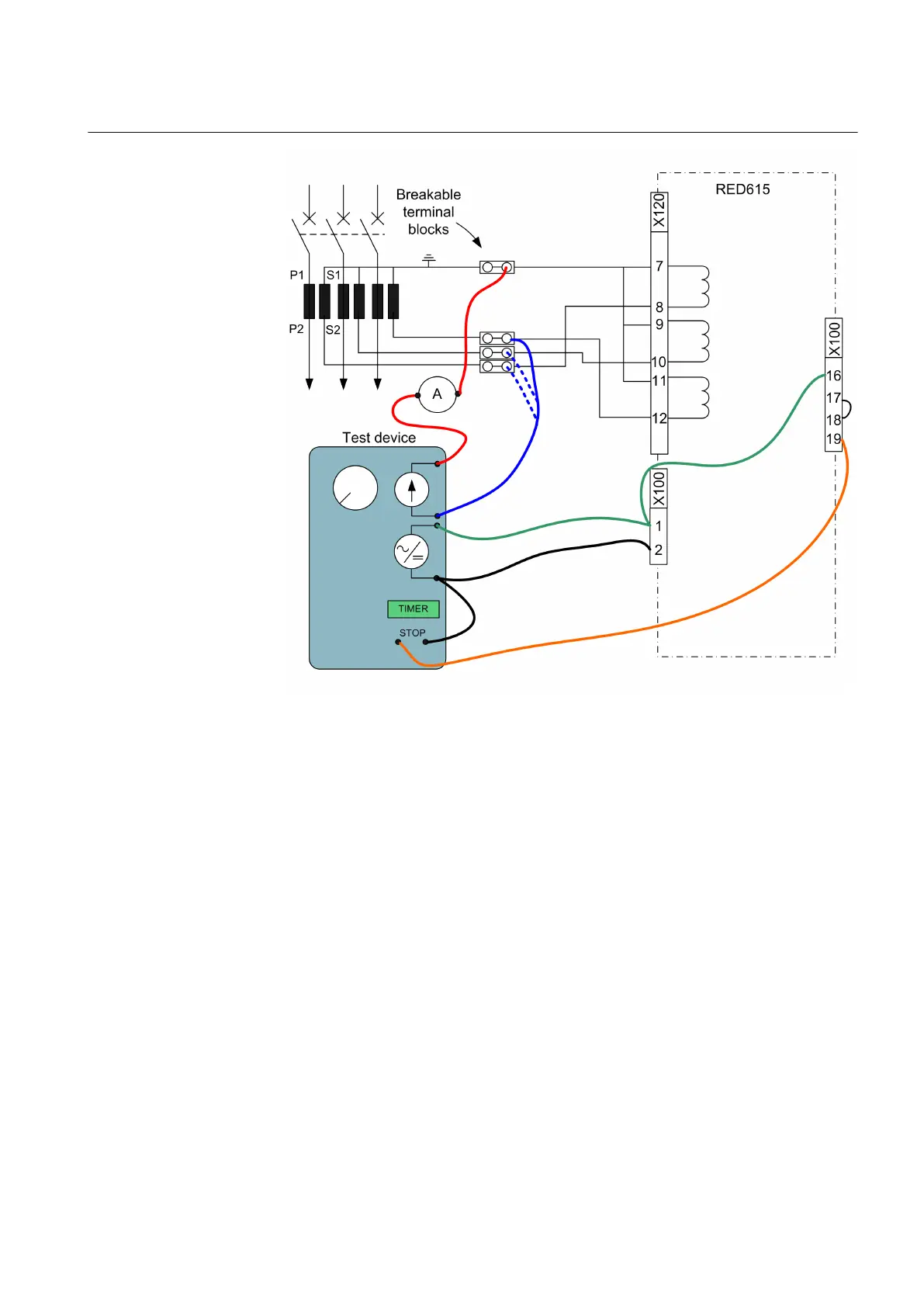 Figure 194: Example of connections to test the line differential IED