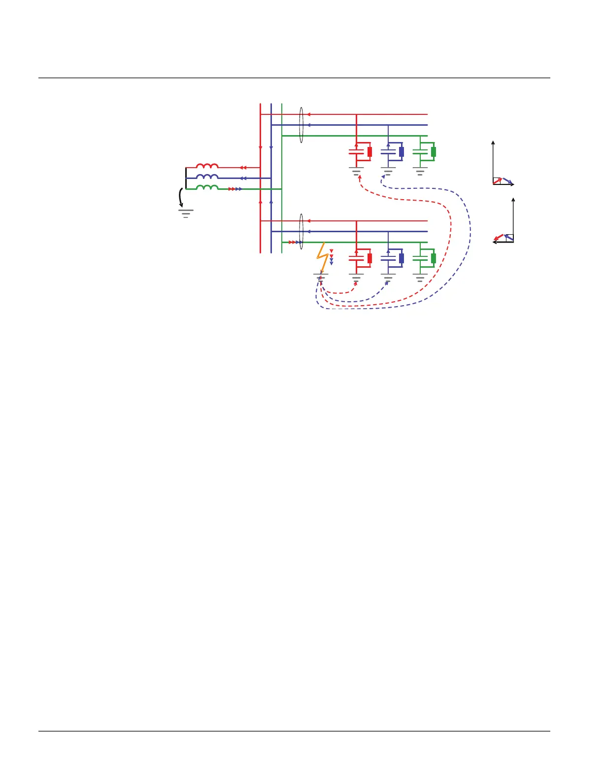 In compensated networks, the capacitive fault current and the inductive resonance coil
