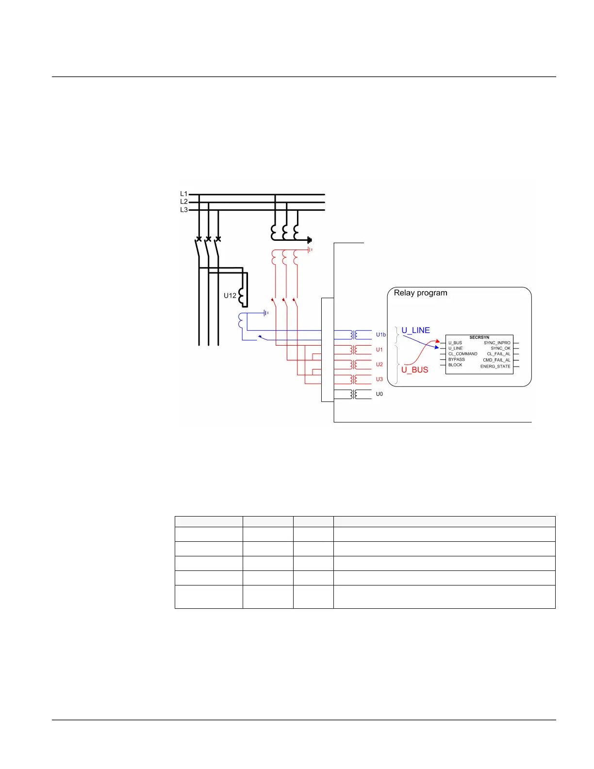 Figure 176: Connection of voltages for the relay and signals used in synch-check