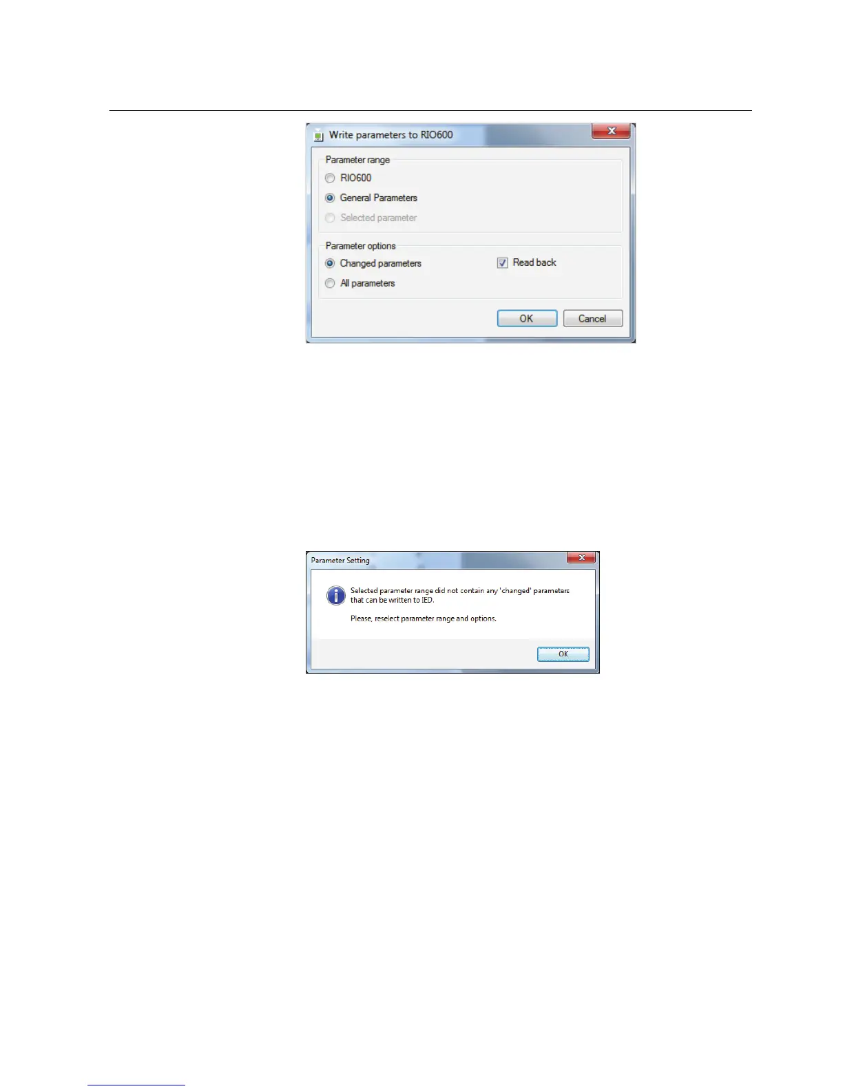 4. Click OK to write the parameters to the device.