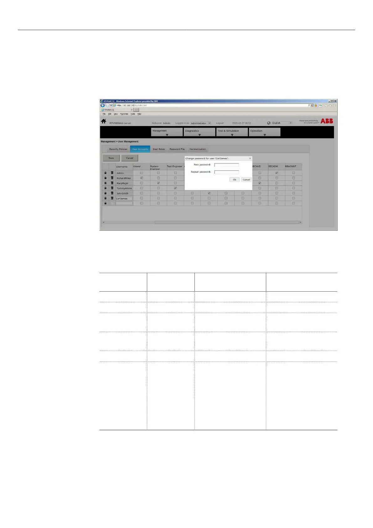 Table 4: Default user accounts in the RTU
