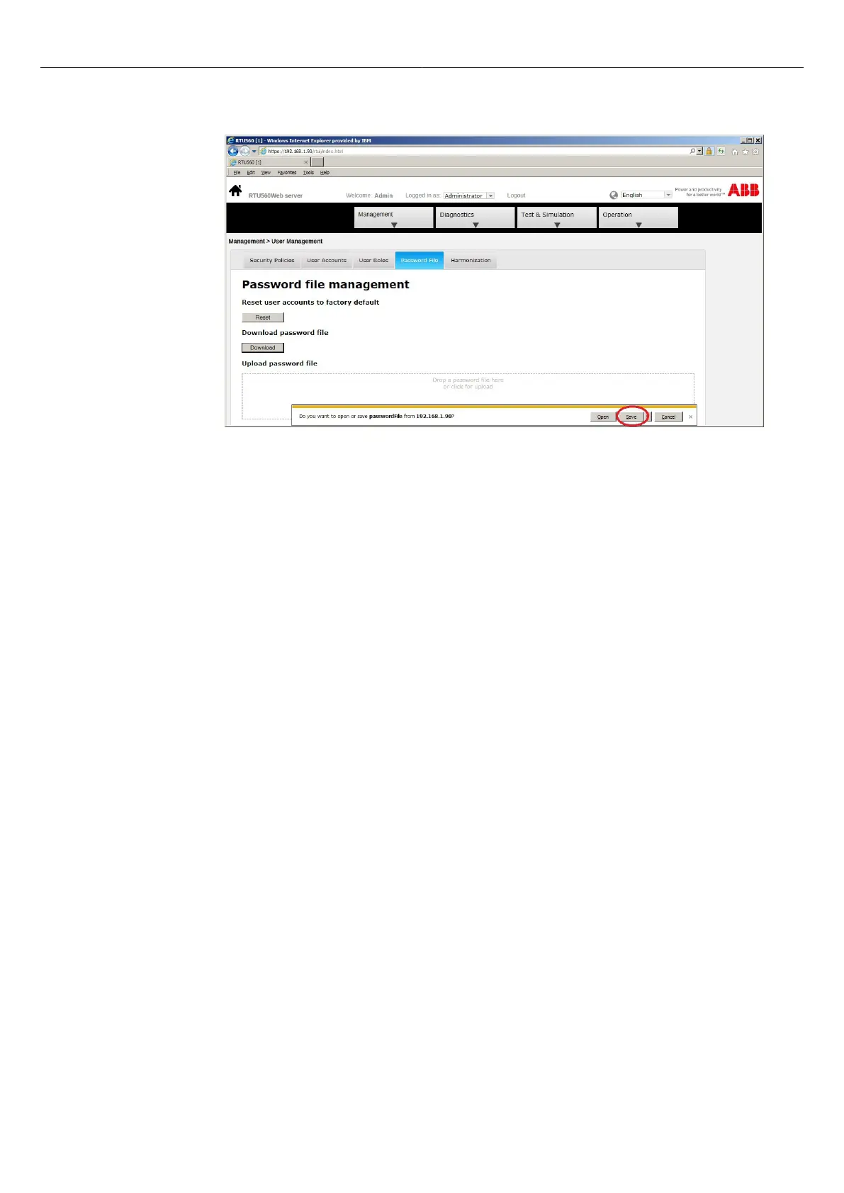 by the uploaded file. If successful, the new password file is active directly. A reset of the RTU500