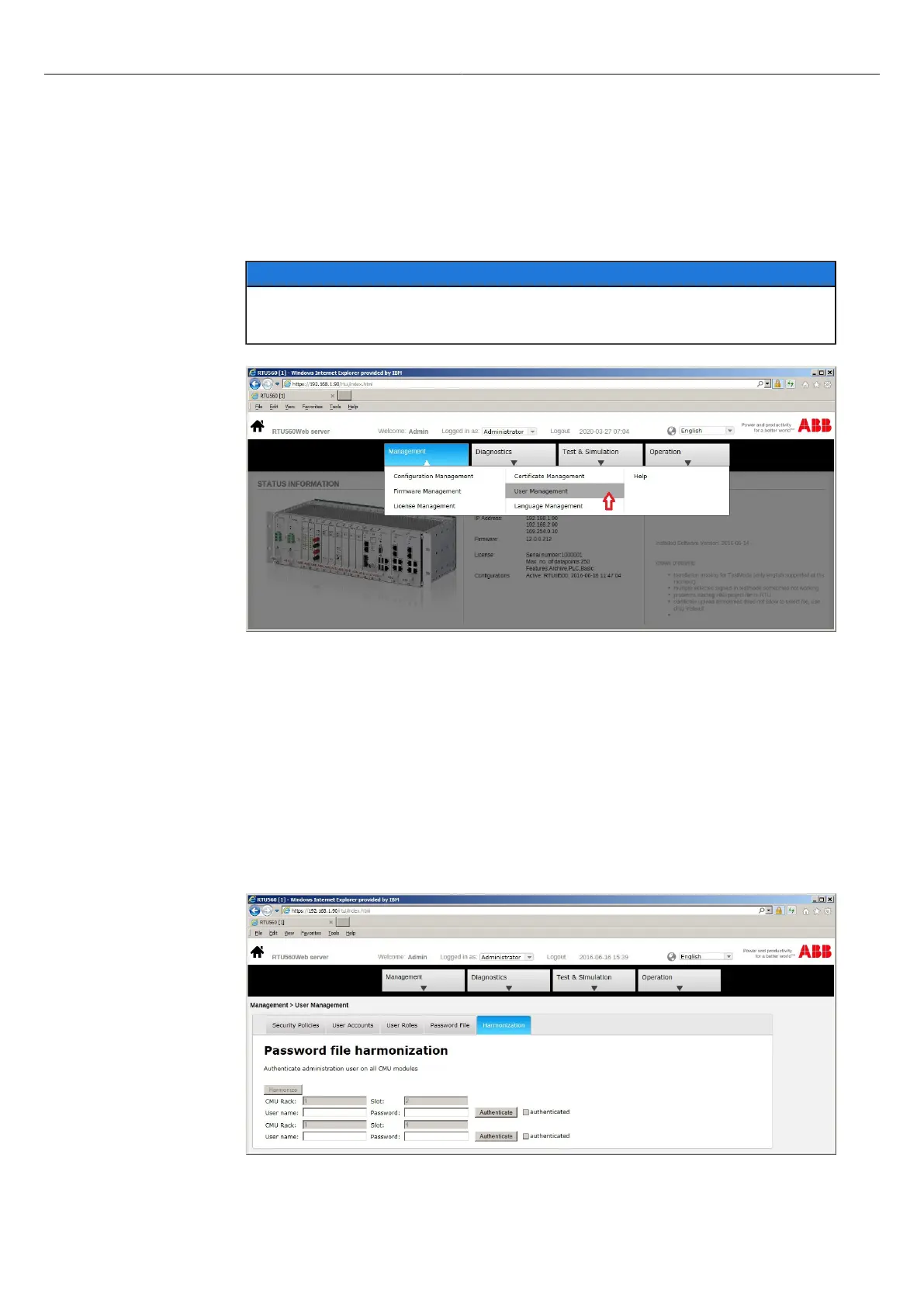To start the password file harmonization the link "User Management", found under the menu item