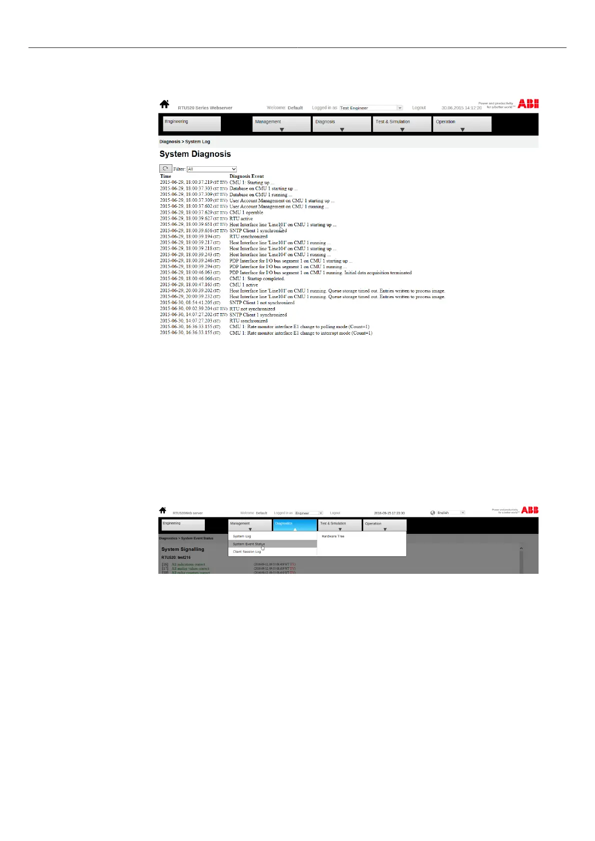 To view the status of the system events in the RTU500 series Web server the link "System Event