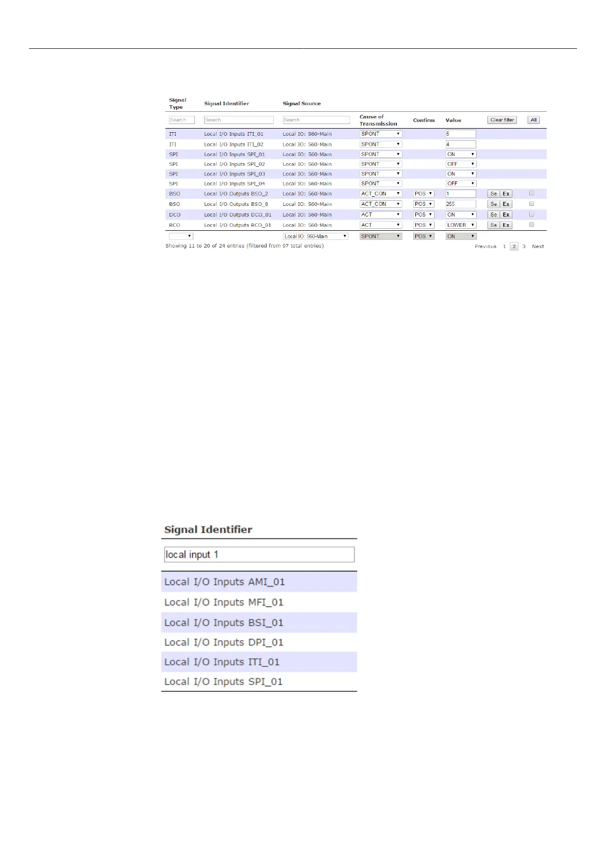 etc.) will be filtered. If the user writes now "pi", both SPI and DPI signals will be filtered.