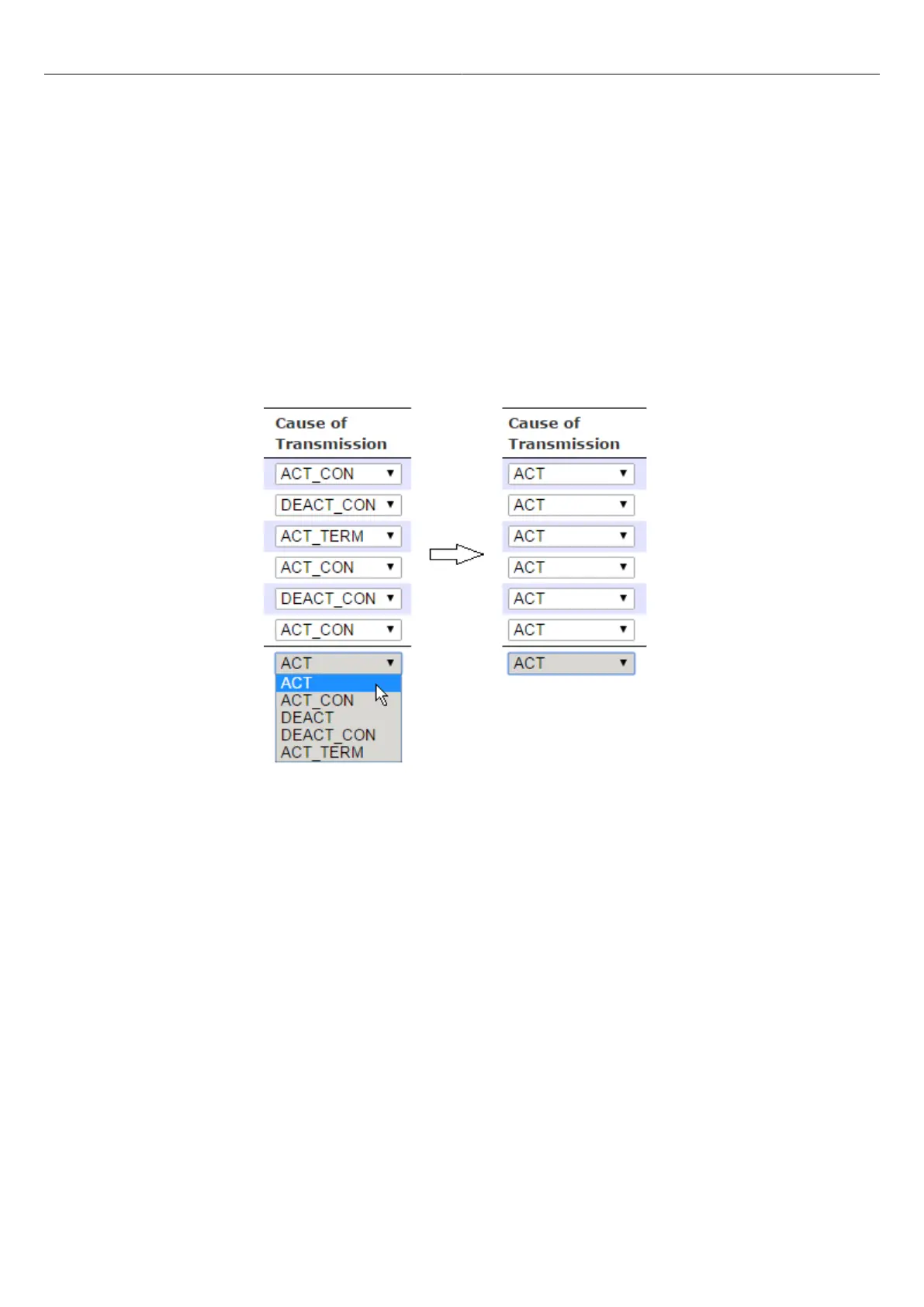 This column contains the cause of transmission with which the signal is sent. The possible val-
