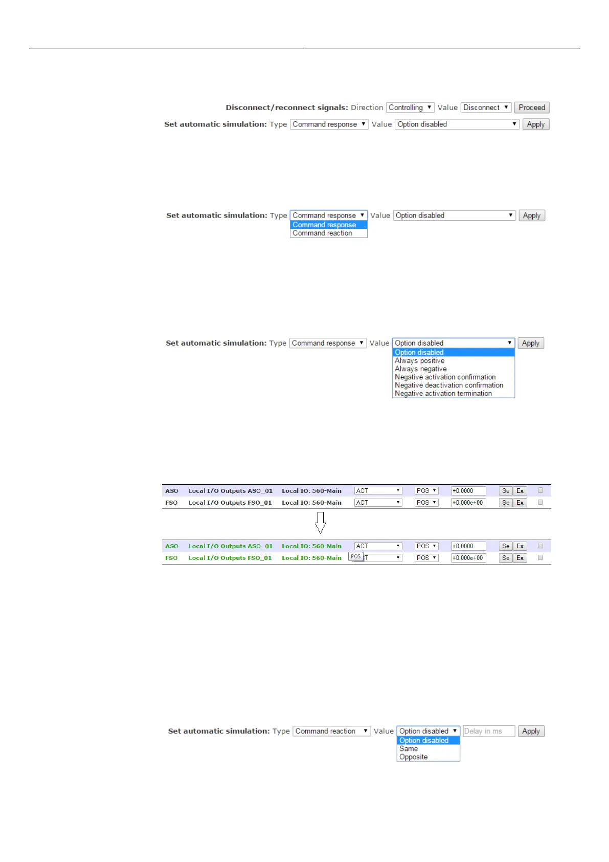 The user shall select the value with which the command reaction is simulated (same or opposite value