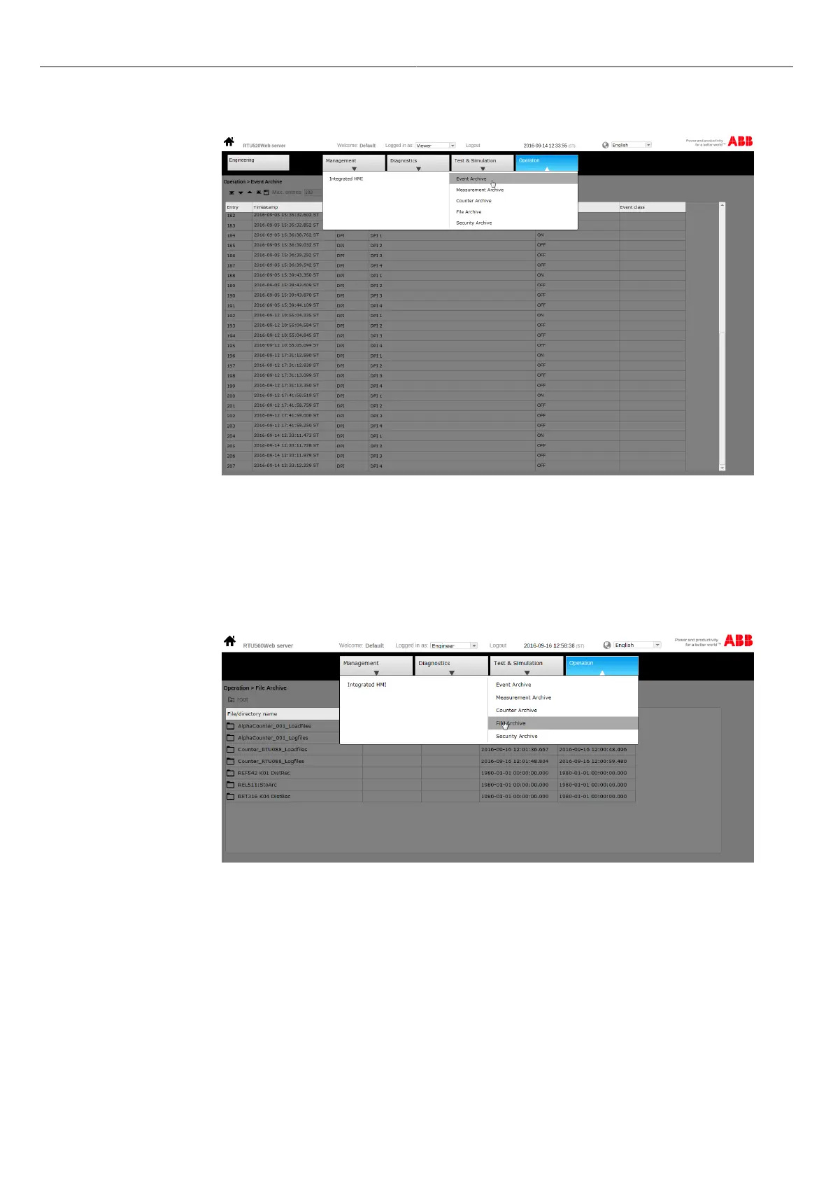 Within RTU500 series Webserver there is an own page for the file archive. This page shows the files