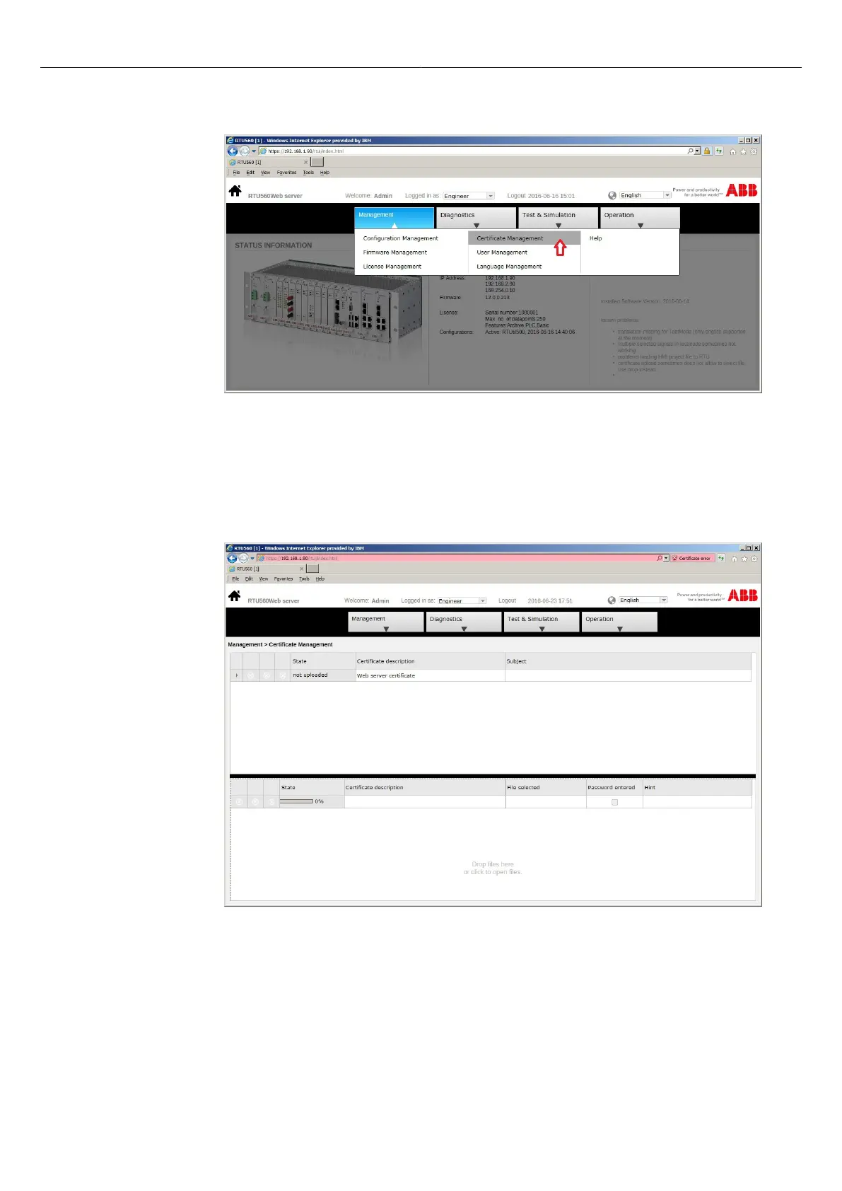 certificate is uploaded in the example figure, a certificate error is shown as explained in chapter