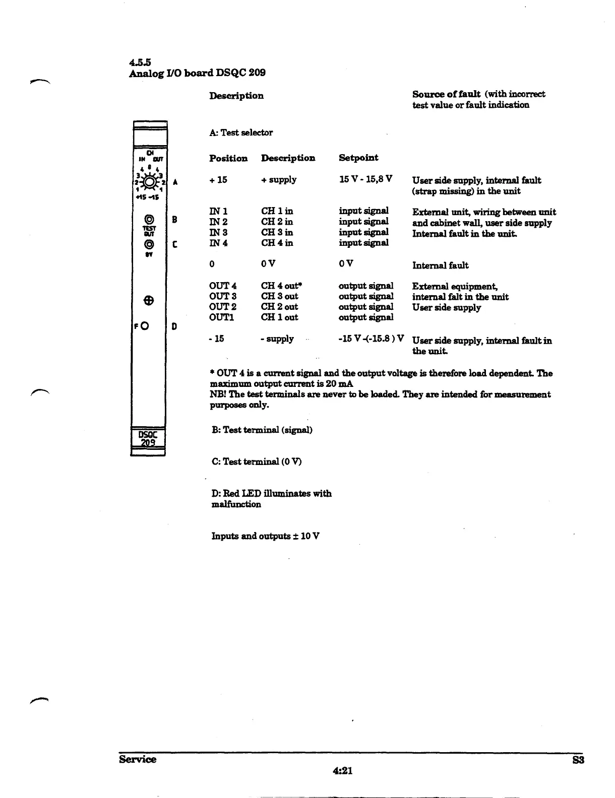 * OUT 4 is a current signal and the output voltage is therefore load dependent