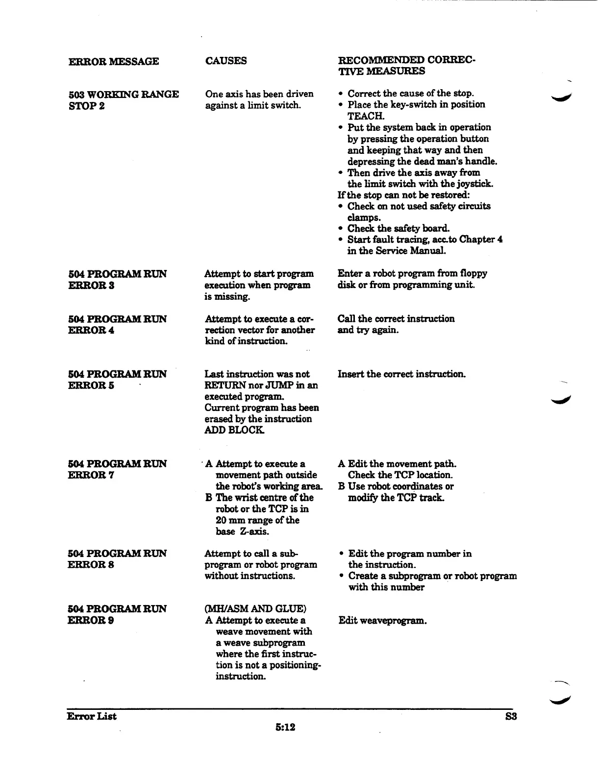 Error List