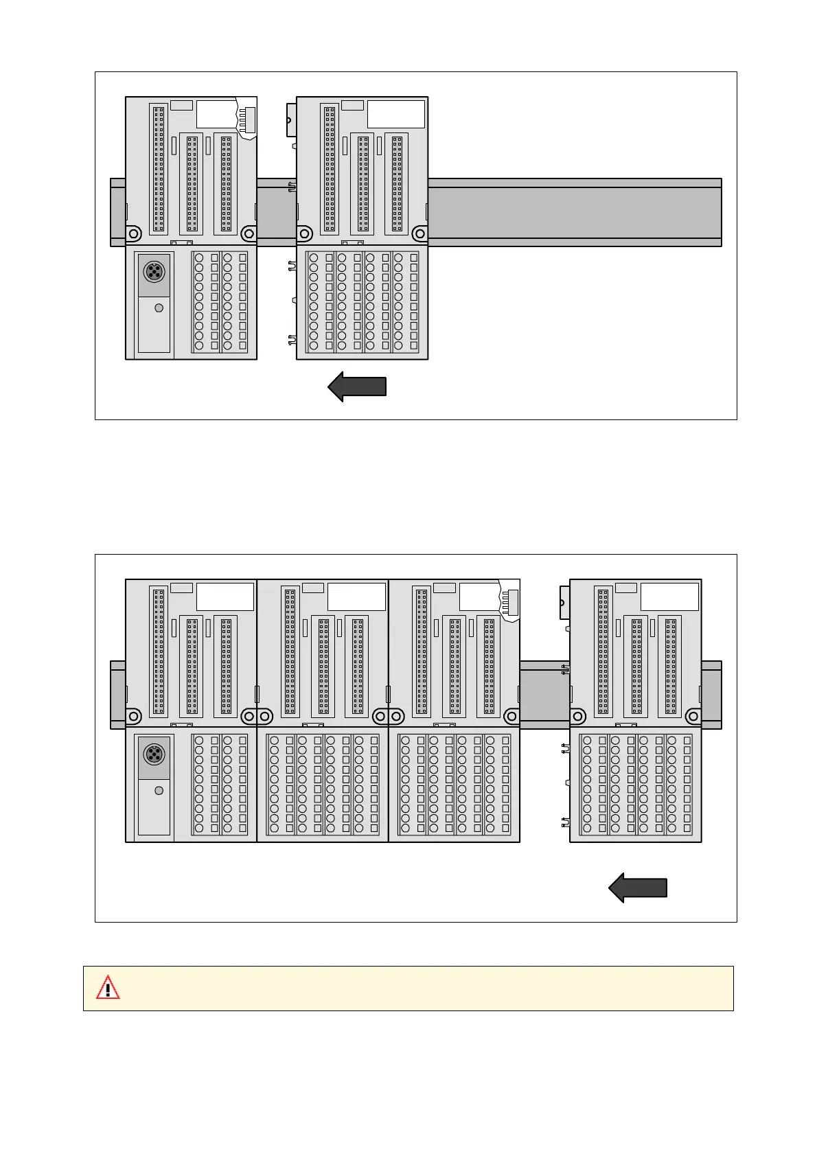 secured on the DIN rail, slide the I/O unit to the left until it fully locks into place creating a solid