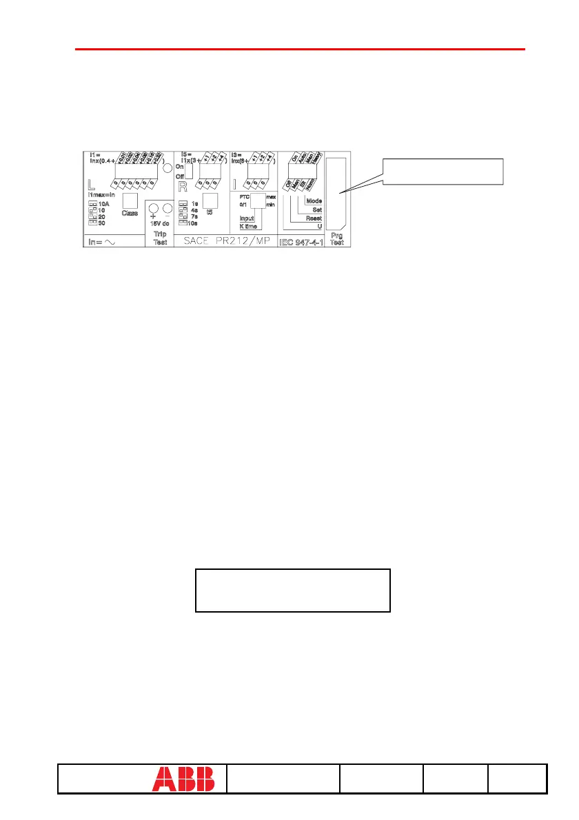 the display of the PR010/T unit, where only the test current and the phase on which it is to be