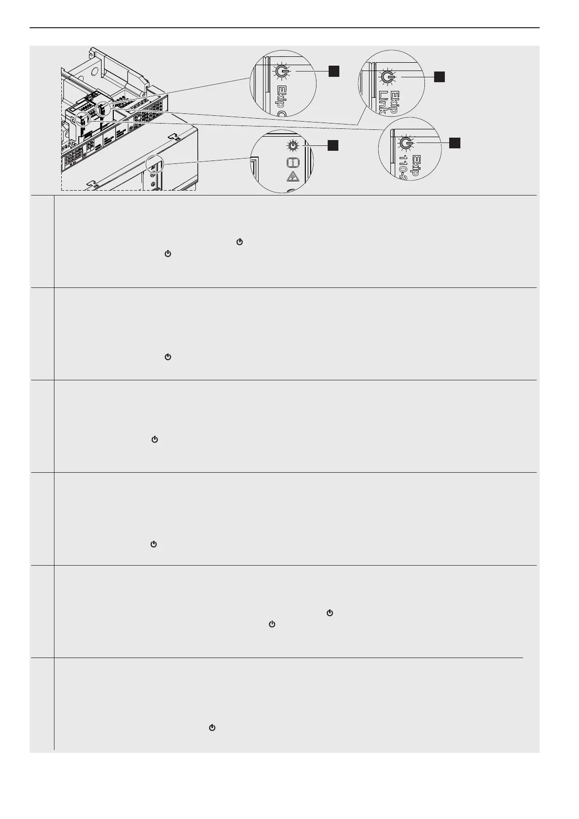 - 如果Ekip Com (1)或Ekip Link (2)的Led 闪烁与脱扣器(4)的闪烁不同步, 请参考断路器的手册。