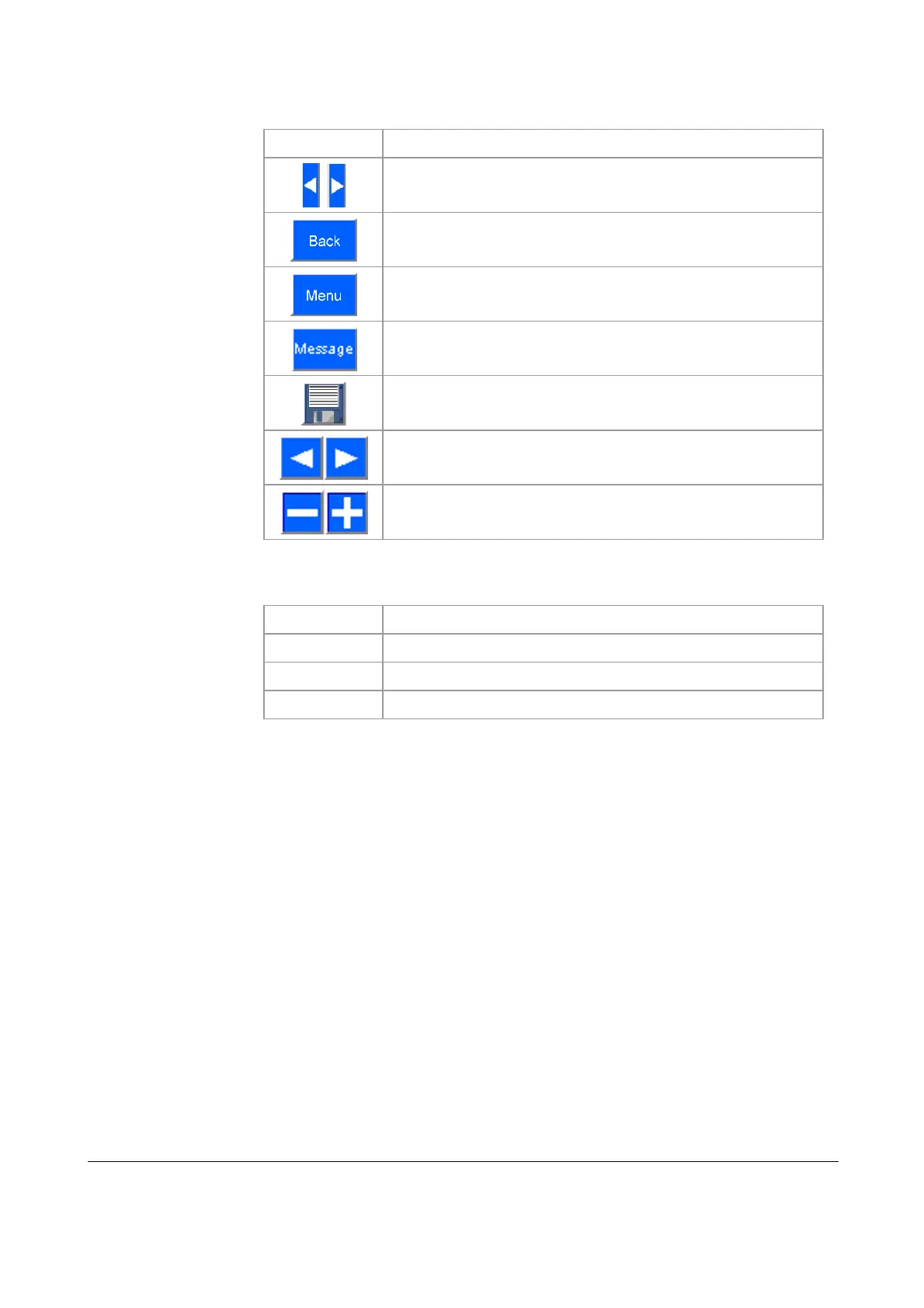 The following table lists the buttons and displays in the user interface and their